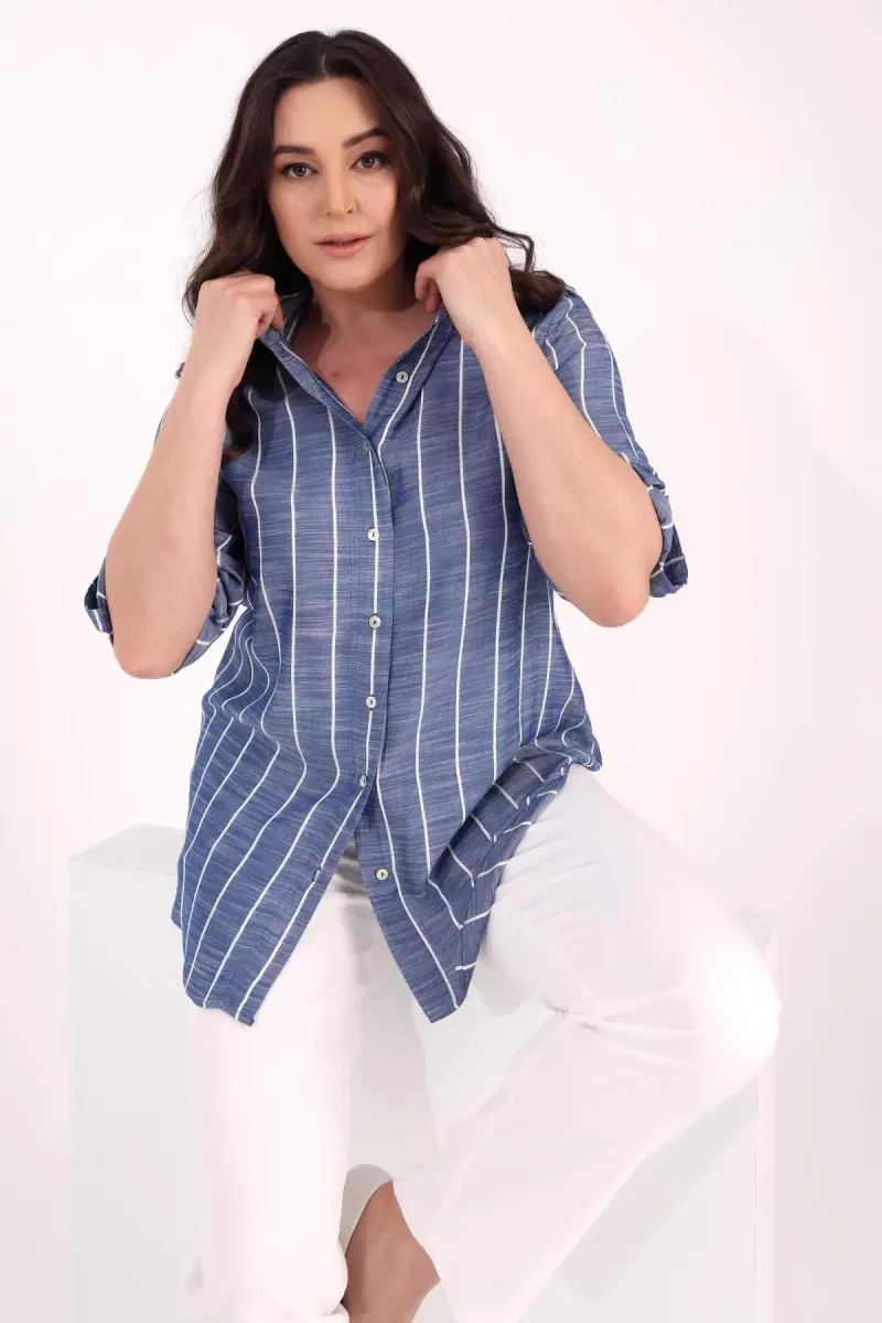 Angelino Büyük Beden Çizgili Basic İndigo Gömlek Ürün Özellikleri: Rahat form ve kalıbı ile mükemmel uyum Uzun kol ve düğme detaylı Çizgili kumaşı ve kol apolet detayı ile şık bir görünüm Kalça altı boy Ürün Açıklaması: Angelino Büyük Beden Çizgili Basic İndigo Gömlek, bahar ve yaz aylarının bitmeyen enerjisini çizgili basic gömleğimiz ile yakala! Hoş dokusu ve cıvıl cıvıl renkleri ile seni büyüleyecek olan bu parçayı kumaş pantolonlar ile birleştirmek isteyebilirsin. Hafif dokusu ile rahatlığı hissederken en yoğun günlerin bile enerjik geçecek!: ) Renk: İndigo Malzeme: %100 Vizkoz Manken Ölçüleri: Omuz 47 cm. - Göğüs 97 cm. - Basen 105 cm. - Bel 82 cm. - Boy 1,79 cm. Ürünün boyu 75 cm. 'dir. Manken 44 beden'dir. Renk ve beden'e göre 1-2 cm. oynamalar olabilir.