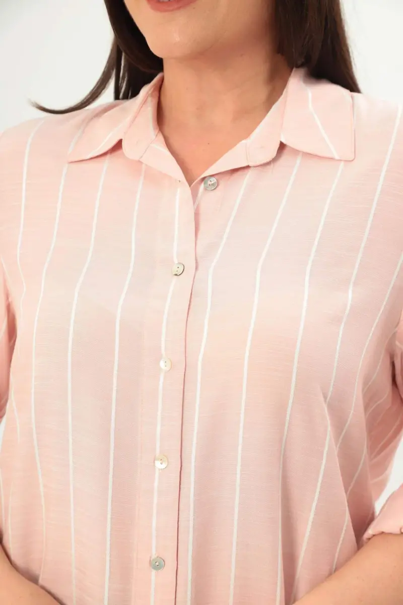 Ангелино Большая Размер Полосатая Пудровая Рубашка | 100% Вискоза | Свободный Крой