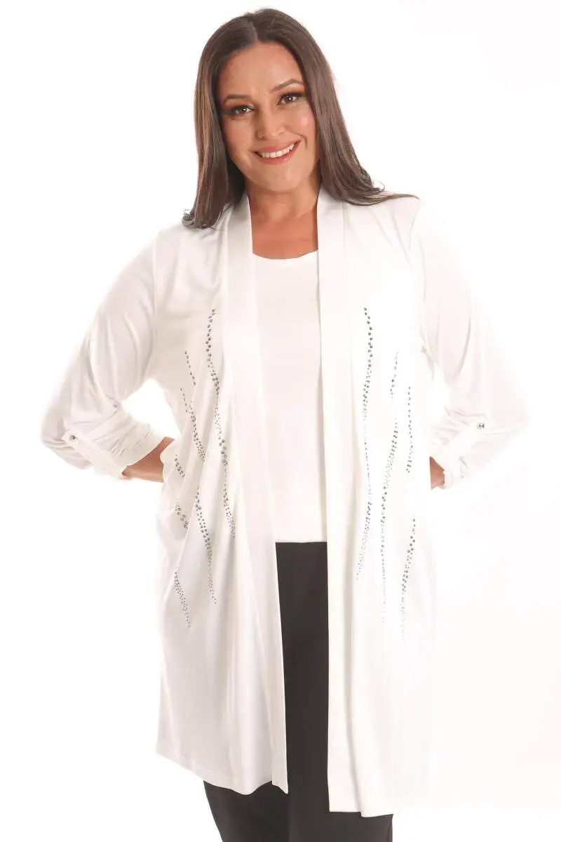 Angelino Büyük Beden Ekru Taş Baskılı Uzun Hırka Ürün Özellikleri: Salaş ve rahat bir görünüm Rahat kalıbı ile konforlu kullanım Taş detayı ile şık bir görünüm Diz üstü boy Ürün Açıklaması: Angelino Büyük Beden Ekru Taş Baskılı Uzun Hırka, tasarımda kullandığı yumuşak doku ile uzun süreli kullanımda konfor sunuyor. Kıyafetlerinizi ve şıklığınızı olumsuz hava şartlarında korurken aynı zamanda tamamlayan özel parçalardan birisi olan hırka modeli sahip olduğu rahat kalıbı ile şık bir görünüm sunuyor. Renk: Ekru Malzeme: %70 Viskoz - %30 Poliester Manken Ölçüleri: Omuz: 47 cm. - Göğüs: 97 cm. - Basen: 105cm - Bel: 80 cm. - Boy: 1,80 cm. Ürün boyu 100 cm. 'dir. Model Bedeni: 44