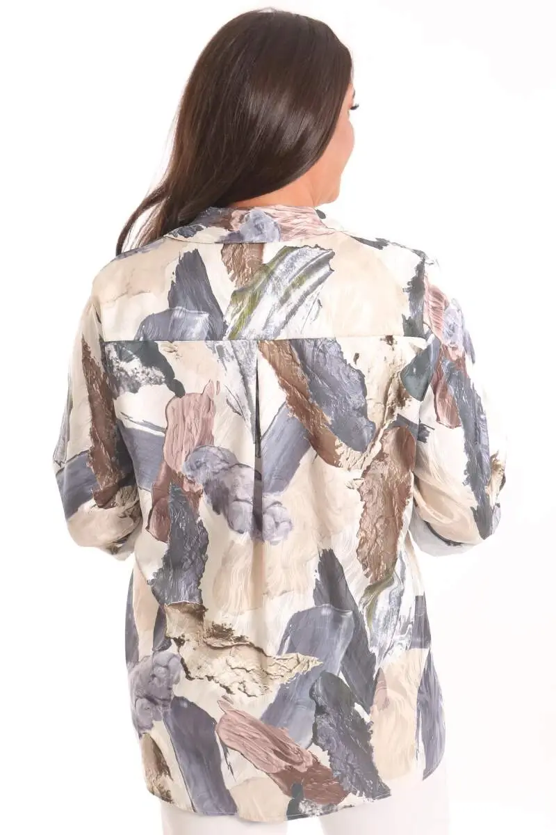 Angelino Büyük Beden Fırça Desenli Jakarlı Vizon Gömlek