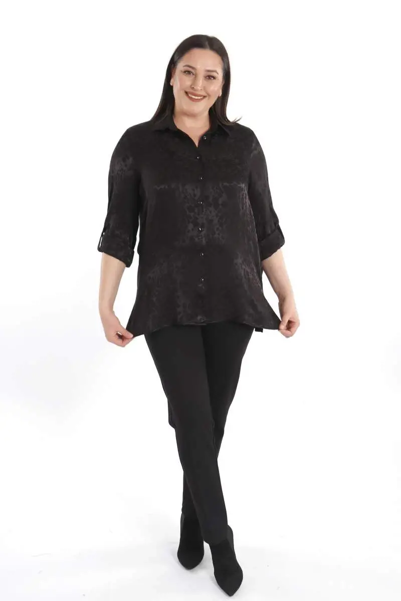 Angelino Büyük Beden Leopar Desenli Floş Siyah Viskoz Gömlek