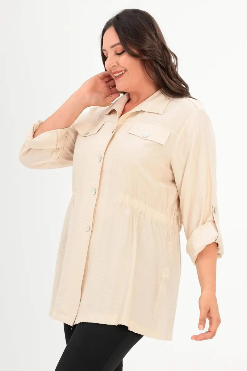 Angelino Büyük Beden Omuz Apoletli Cep Kapaklı Bej Trençkot