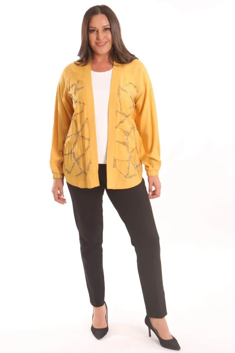 Angelino Büyük Beden Ön Taş Baskılı Hardal Ceket Ürün Özellikleri: Rahat kalıbı ile kullanımı kolay Ön kısmı taş detaylı Yaka bant detaylı Kalça altı boy Ürün Açıklaması: Angelino Büyük Beden Ön Taş Baskılı Hardal Ceket, klasik kesimi yuvarlak yaka detayı ve dokusu ile maskülen tavrı vurgulamanıza yardımcı oluyor. Ceket modelinin ön taş detayı çarpıcı bir görünüm yaratıyor. Renk: Hardal Malzeme: %100 Polyester Manken Ölçüleri: Omuz: 47 cm. - Göğüs: 97 cm. - Basen: 105cm - Bel: 80 cm. - Boy: 1,80 cm. Ürün boyu 75 cm. 'dir. Model Bedeni: 44