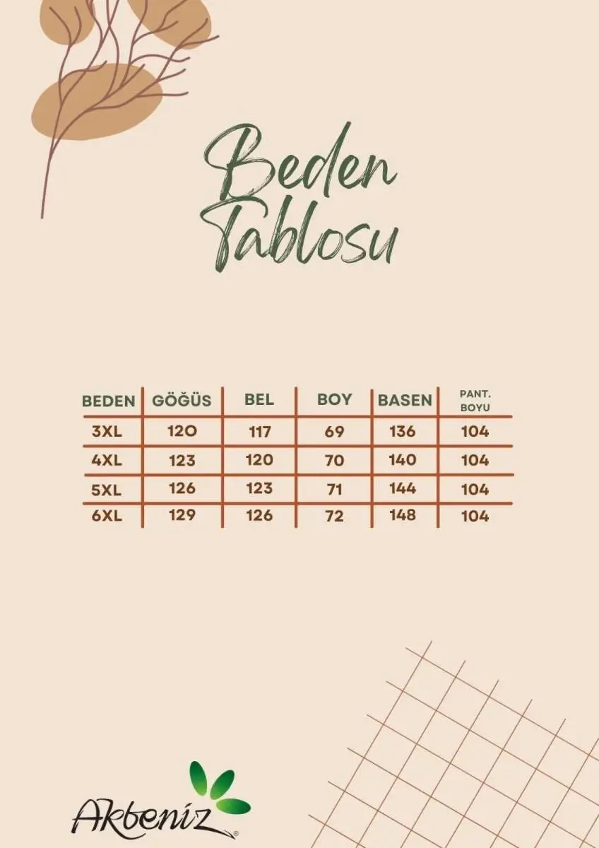 Code : 202601 Hakiİçerik : %100 Pamuk Kalın KışlıkZamansız haki rengi ve minimal şerit detaylarıyla ev giyimine sade bir şıklık kazandıran bu pijama takımı, büyük beden rahat kalıbı sayesinde gün boyu konfor sunar. Yumuşak dokusu ve esnek yapısıyla hem uyku saatlerinde hem de ev içinde keyifli bir kullanım sağlar.Öne Çıkan Özellikler ✔️ Büyük beden vücut yapısına uyumlu, rahat ve dökümlü kesim ✔️ Uzun kollu üst tasarımı ile mevsim geçişlerine uygun ✔️ Göğüs ve yanlarda yer alan şerit detaylarıyla modern görünüm ✔️ Esnek ve yumuşak dokusu sayesinde hareket özgürlüğü ✔️ Takım formu ile pratik ve şık ev giyimi alternatifi Kullanım Alanları Günlük ev giyimi Uyku ve dinlenme saatleri Rahat ama düzenli görünüm isteyen ev kombinleri Bakım Talimatı 30°C’de makinede yıkayınız Ağartıcı kullanmayınız Düşük ısıda ütüleyiniz Uzun ömürlü kullanım için benzer renklerle yıkayınız