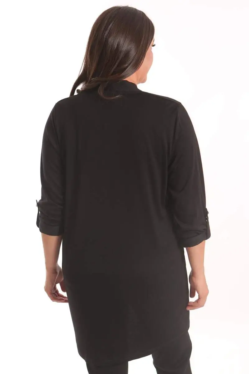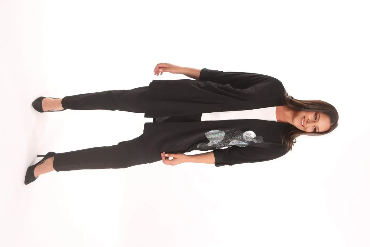 Angelino Büyük Beden Siyah Daire Desen Taş Baskılı Uzun Hırka