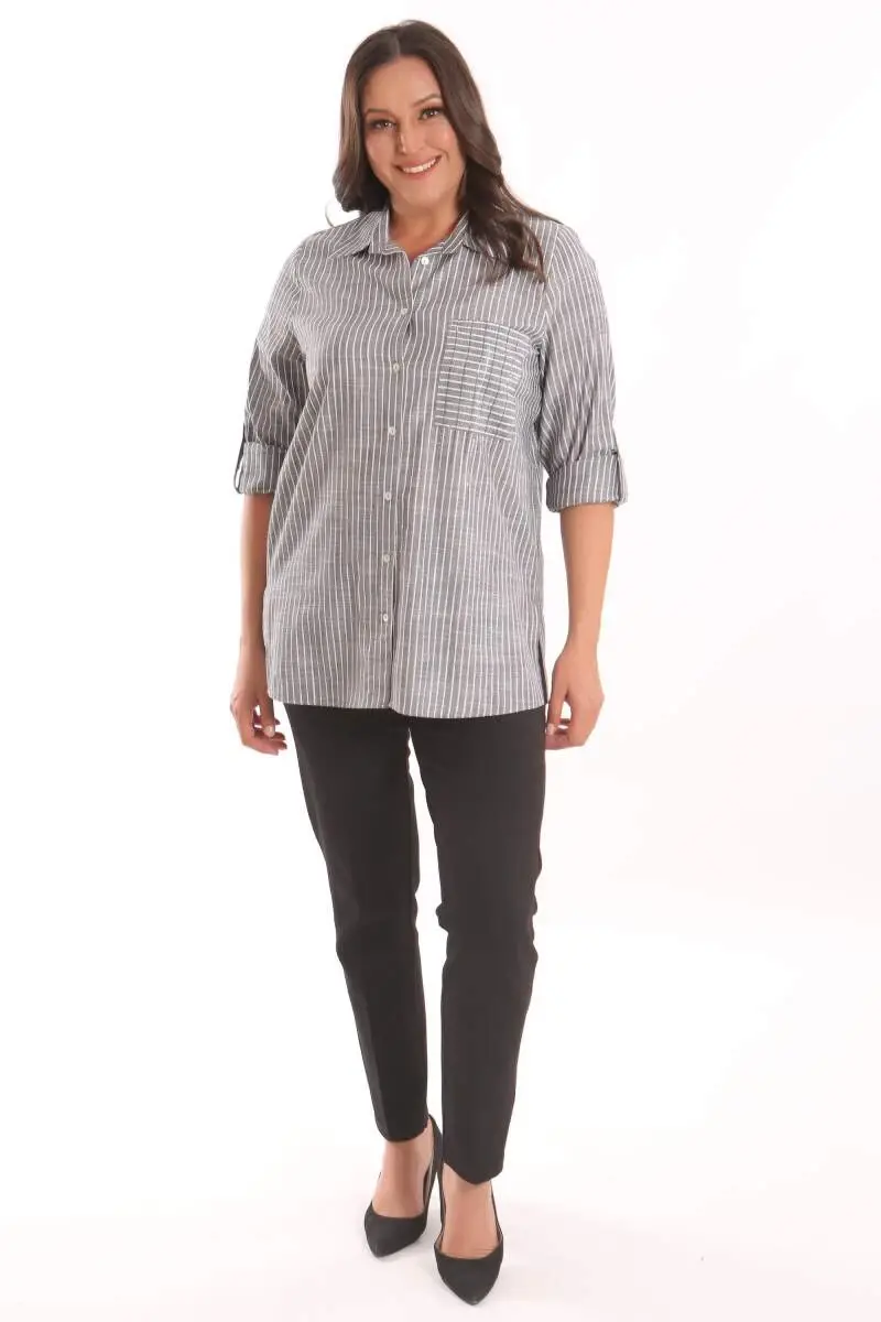 Angelino Büyük Beden Siyah Taş Baskılı Allerli Gömlek Ürün Özellikleri: Rahat form kalıbı ve taş baskılı kumaşı ile göz alıcı görünüm Katlanabilir kol ile işlevsel kullanım Kalça altı boy Angelino Büyük Beden Siyah Taş Baskılı Allerli Gömlek, bahar ve yaz aylarının bitmeyen enerjisini çizgili gömlek ile yakala! Hoş dokusu ile seni büyüleyecek olan bu parçayı kumaş pantolonlar ile birleştirmek isteyebilirsin. Hafif dokusu ile rahatlığı hissederken en yoğun günlerin bile enerjik geçecek!: ) Renk: Siyah Malzeme: %100 Poliester Manken Ölçüleri: Omuz 47 cm. - Göğüs 97 cm. - Basen 105 cm. - Bel 82 cm. - Boy 1,79 cm. Ürünün boyu 75 cm. 'dir. Manken 44 beden'dir. Renk ve beden'e göre 1-2 cm. oynamalar olabilir.