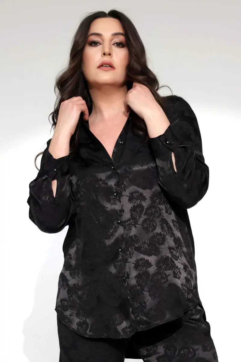 Angelino Büyük Beden Yaprak Desenli Siyah Gömlek Ürün Özellikleri: Rahat form kalıbı ve desenli kumaşı ile göz alıcı görünüm Kalça altı boy Angelino Büyük Beden Yaprak Desenli Siyah Gömlek , bahar ve yaz aylarının bitmeyen enerjisini gömlek ile yakala! Hoş dokusu ile seni büyüleyecek olan bu parçayı kumaş pantolonlar ile birleştirmek isteyebilirsin. Hafif dokusu ile rahatlığı hissederken en yoğun günlerin bile enerjik geçecek!: ) Renk: Siyah Malzeme: %100 Viskoz Manken Ölçüleri: Omuz 47 cm. - Göğüs 97 cm. - Basen 105 cm. - Bel 82 cm. - Boy 1,79 cm. 42 Beden: On Omuzdan Boy: 79,3 cm. -Göğüs: 60,5 cm. -Bel: 58,7 cm. -Kalça: 66,7 cm. -Kol Boyu: 61,56 cm. -Pazu: 42,8 cm. 44 Beden: On Omuzdan Boy: 80,3 cm. -Göğüs: 63 cm. -Bel: 61,3 cm. -Kalça: 69,4 cm. -Kol Boyu: 62 cm. -Pazu: 44,9 cm. 46 Beden: On Omuzdan Boy: 81,3 cm. -Göğüs: 65,6 cm. -Bel: 64 cm. -Kalça: 72 cm. -Kol Boyu: 62,7 cm. -Pazu: 46,9 cm. 48 Beden: On Omuzdan Boy: 82,3 cm. -Göğüs: 70,8 cm. -Bel: 69 cm. -Kalça: 74,8 cm. -Kol Boyu: 63,3 cm. -Pazu: 49 cm. Ürünün boyu 75 cm. 'dir. Manken 44 beden'dir. Renk ve beden'e göre 1-2 cm. oynamalar olabilir. Yıkama Talimatı: Ağartma yapılamaz,Düşük Isıda Ütüleyiniz,Sadece Kuru Temizleme,Tamburlu Kurutucuda Kurutulmaz