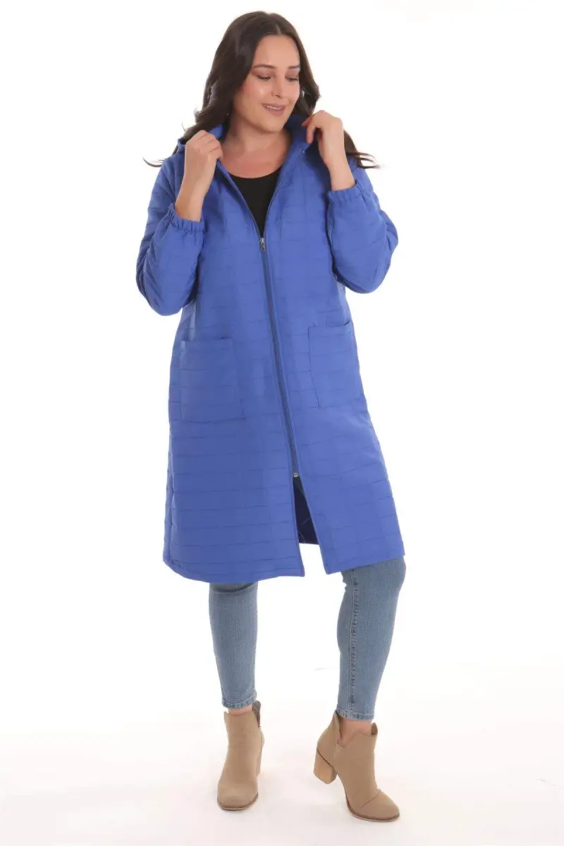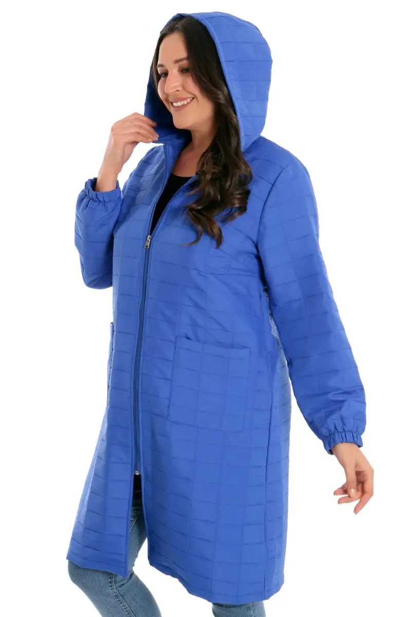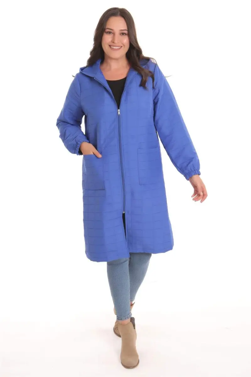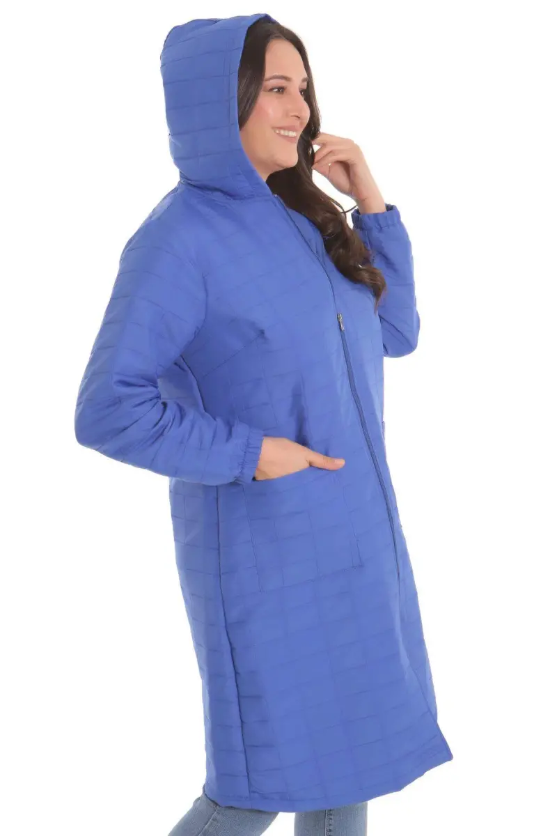 Angelino Büyük Kareli Desen Fermuarlı Bej Kap Ürün Özellikleri: Kapitone kumaş ve cep detaylı Fermuar detaylı Kapitone kapüşonlu Su itici kumaş Renk: Saks Malzeme: %100 Poliester Manken Ölçüleri: Omuz: 47 cm. - Göğüs: 97 cm. - Basen: 105cm - Bel: 80 cm. - Boy: 1,79 cm. Ürün boyu: 93 cm. 'dir. Model Bedeni: 44