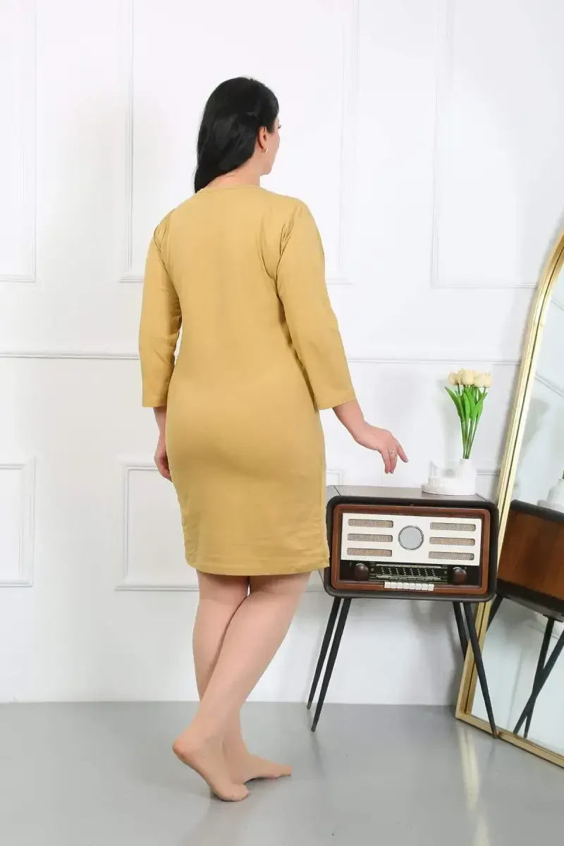 rahat kesimli ve şık tasarımıyla büyük beden kadınların gardırobunda olmazsa olmaz bir parçadır. %100 pamuk kumaşıyla son derece yumuşak ve cilde dosttur, size gün boyu konforlu bir kullanım sunar. Hardal rengi, hem evde hem de dışarıda şık bir görünüm katacaktır.