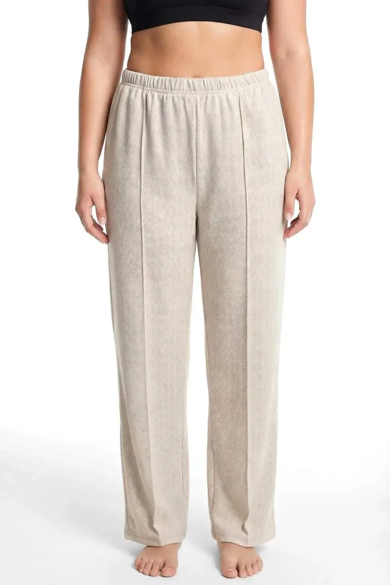 Angelino Kadın Büyük Beden Rahat Kesim Bej Cepli Pijama Altı Bej
