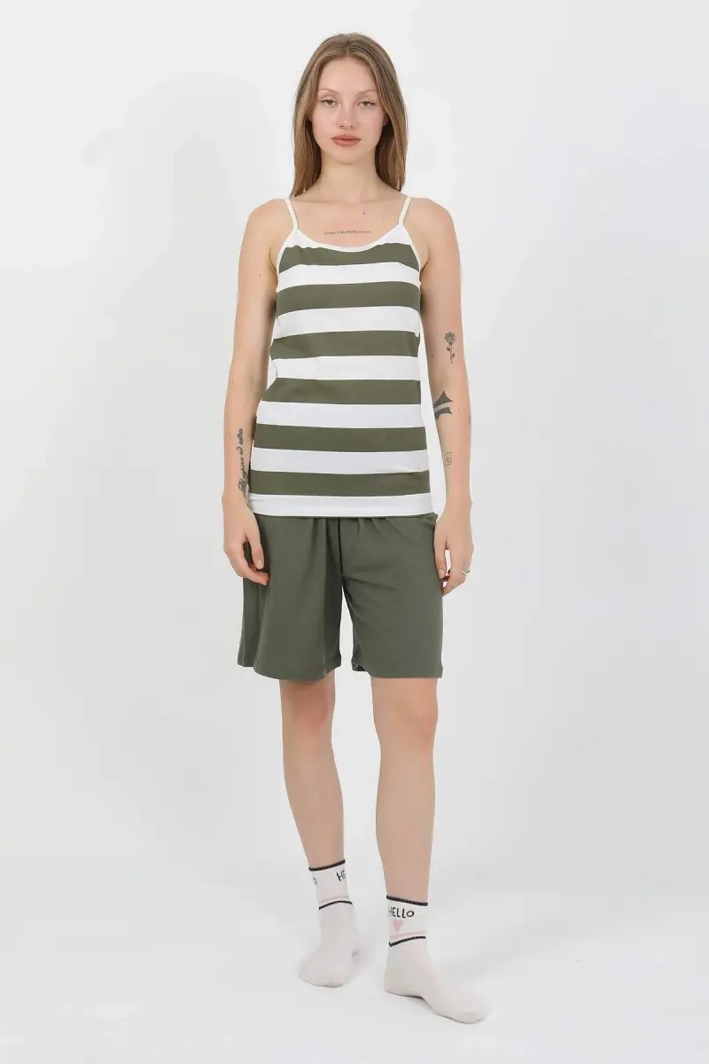 Angelino Kadın İp Askılı Pamuk Penye Şortlu Takım Haki 3634, yaz aylarının vazgeçilmezi olmaya aday, konforlu ve şık bir seçenektir. Pamuk penye kumaşın yumuşak dokusu, cildinize nazikçe temas ederek gün boyu rahatlık sağlar. İp askılı üst tasarımı, sıcak havalarda serin kalmanıza yardımcı olurken, şortlu alt kısım hareket özgürlüğünüzü kısıtlamadan rahat bir kullanım sunar. Haki rengi, doğanın tonlarını yansıtır ve her türlü kombin için mükemmel bir zemin oluşturur. Bu takım, sadece evde değil, aynı zamanda günlük aktivitelerinizde, tatillerde veya arkadaşlarla buluşmalarda da rahatlıkla tercih edebileceğiniz çok yönlü bir parçadır. Şıklığı ve rahatlığı bir arada arayan kadınlar için ideal olan bu takım, gardırobunuzun en sevilen parçalarından biri olacak. Angelino kalitesiyle üretilen bu takım, uzun ömürlü kullanım sunar ve yıkama sonrası dahi ilk günkü formunu korur. İster tek başına, ister farklı parçalarla kombinleyerek kendi tarzınızı yansıtabilirsiniz. Kendinizi hem rahat hem de şık hissetmek istediğiniz her an, Angelino Kadın İp Askılı Pamuk Penye Şortlu Takım Haki 3634 size eşlik edecektir. Yazın enerjisini ve hafifliğini üzerinizde taşıyın.