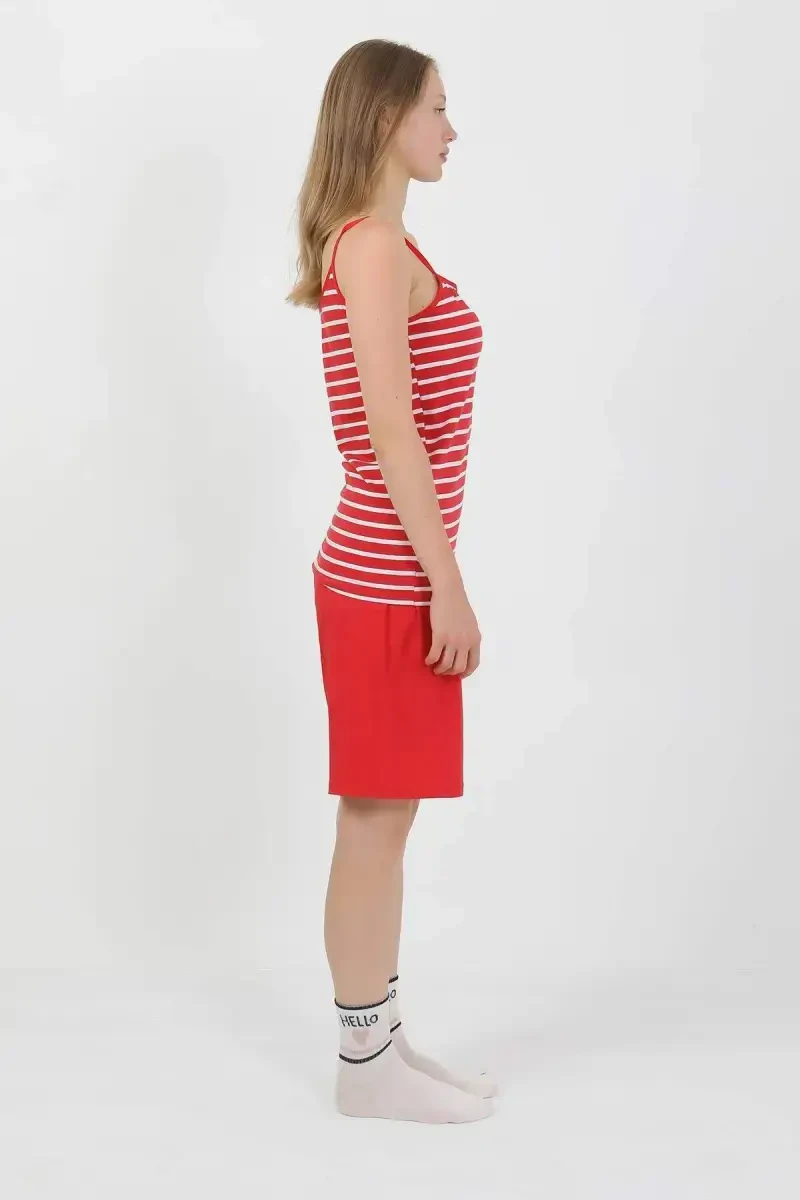 Angelino Kadın İp Askılı Pamuk Penye Şortlu Takım Kırmızı 3634, yaz mevsiminin sıcak günlerinde hem rahatlığı hem de şıklığı bir arada sunan ideal bir seçenektir. Bu özel tasarım, pamuklu penye kumaşın hafifliği ve nefes alabilir yapısı sayesinde gün boyu konfor sağlar. Kırmızı rengin enerjisiyle birleşen ip askılı bluz ve şort kombinasyonu, dinamik ve modern bir görünüm yaratır. İster evde dinlenirken, ister arkadaşlarınızla buluşurken, isterse de yaz tatilinde keyifli anlar yaşarken bu takımı rahatlıkla tercih edebilirsiniz.İp askılı bluzun zarif detayları, omuzlarınızı ve dekoltenizi hoş bir şekilde vurgulayarak feminen bir hava katar. Bluzun rahat kesimi, hareket özgürlüğünüzü kısıtlamaz ve gün boyu konforlu bir kullanım sunar. Şortun elastik bel bandı, vücudunuza tam oturur ve gün boyu rahatlık sağlar. Ayrıca, şortun ideal uzunluğu, hem şık hem de rahat bir görünüm elde etmenize yardımcı olur.Angelino kalitesiyle üretilen bu takım, uzun ömürlü kullanım sunar. Yüksek kaliteli pamuklu penye kumaş, yıkamaya karşı dayanıklıdır ve rengini uzun süre korur. Bu sayede, takımı uzun yıllar boyunca keyifle kullanabilirsiniz. Ayrıca, takımın bakımı da oldukça kolaydır. Makinede yıkanabilir özelliği sayesinde, zamandan tasarruf edebilirsiniz.Bu şortlu takım, farklı kombinasyonlarla da kolayca uyum sağlayabilir. İster spor ayakkabılarla günlük bir tarz yaratın, ister sandaletlerle plajda şık bir görünüm elde edin, isterseniz de topuklu ayakkabılarla özel bir davete katılın. Aksesuarlarınızı da takıma uygun olarak seçerek, tarzınızı tamamlayabilirsiniz. Örneğin, hasır şapka ve güneş gözlüğü ile yazlık bir hava yaratabilir, şık bir kolye ve bileklik ile de daha zarif bir görünüm elde edebilirsiniz.Angelino Kadın İp Askılı Pamuk Penye Şortlu Takım Kırmızı 3634, sadece şık ve rahat olmakla kalmaz, aynı zamanda pratik bir seçenektir. Valizinize kolayca sığar ve kırışıklık yapmaz, bu sayede seyahatlerinizde de yanınızda bulundurabilirsiniz. Hem günlük kullanım hem de özel günler için ideal olan bu takım, gardırobunuzun vazgeçilmez bir parçası olacak. Kırmızı rengin enerjisi ve pamuklu penye kumaşın rahatlığı ile yazın tadını çıkarın. Angelino kalitesiyle üretilen bu takım, şıklığı ve konforu bir arada arayan kadınlar için mükemmel bir seçimdir. Yaz gardırobunuzu yenilemek ve kendinizi özel hissetmek için Angelino Kadın İp Askılı Pamuk Penye Şortlu Takım Kırmızı 3634'ü hemen deneyin.
