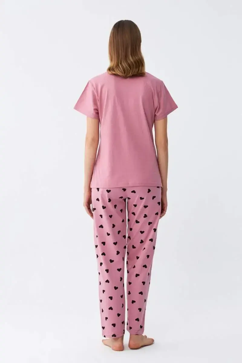 Angelino Kadın Somon Kalp Desenli Kısa Kollu Penye Pijama Takımı ile rahatlığın ve şıklığın mükemmel uyumunu yakalayın. Günün yoğun temposundan sonra eve geldiğinizde üzerinizden çıkarmak istemeyeceğiniz bu pijama takımı, %100 pamuk kumaşı sayesinde teninize yumuşacık bir dokunuş sunar. Cildinizi tahriş etmeyen, nefes alabilen yapısı ile gece boyunca konforlu bir uyku deneyimi yaşatır. Sevimli somon rengi, kalp desenli pantolonu ve göğsünde yer alan siyah "Love" baskısı ile hem genç hem de enerjik bir görünüm sergiler. Bu pijama takımı sadece uyku için değil, evde geçirdiğiniz tüm zamanlarda size eşlik edecek kadar şık ve kullanışlıdır. İster kitap okuyun, ister film izleyin, ister sevdiklerinizle sohbet edin; Angelino pijama takımı ile her anınız keyifli ve rahat geçecektir. Yumuşak dokusu ve rahat kesimi sayesinde hareket özgürlüğünüzü kısıtlamaz, gün boyu üzerinizde yokmuş gibi hissedersiniz. Terletmeyen yapısı sayesinde yaz aylarında da gönül rahatlığıyla kullanabilirsiniz. Angelino kalitesiyle üretilen bu pijama takımı, uzun ömürlü kullanım sunar ve yıkama sonrası çekme, solma gibi sorunlar yaşatmaz. Kendinizi şımartmak veya sevdiklerinize anlamlı bir hediye vermek için ideal bir seçimdir. Angelino Kadın Somon Kalp Desenli Kısa Kollu Penye Pijama Takımı ile evde geçirdiğiniz zamanlara renk katın, rahatlığın ve şıklığın tadını çıkarın. Bu pijama takımı, ev giyiminde yeni bir standart belirleyerek, konforu ve estetiği bir araya getiriyor. Gardırobunuzun vazgeçilmezi olacak bu ürün, sadece bir pijama takımı değil, aynı zamanda bir yaşam tarzı sunuyor. Angelino ile kendinizi özel hissedin ve her anın keyfini çıkarın. Unutmayın, iyi bir uyku ve rahat bir ev yaşamı için doğru kıyafetler seçmek önemlidir. Angelino Kadın Somon Kalp Desenli Kısa Kollu Penye Pijama Takımı, size bu konuda en iyi desteği sağlayacaktır.