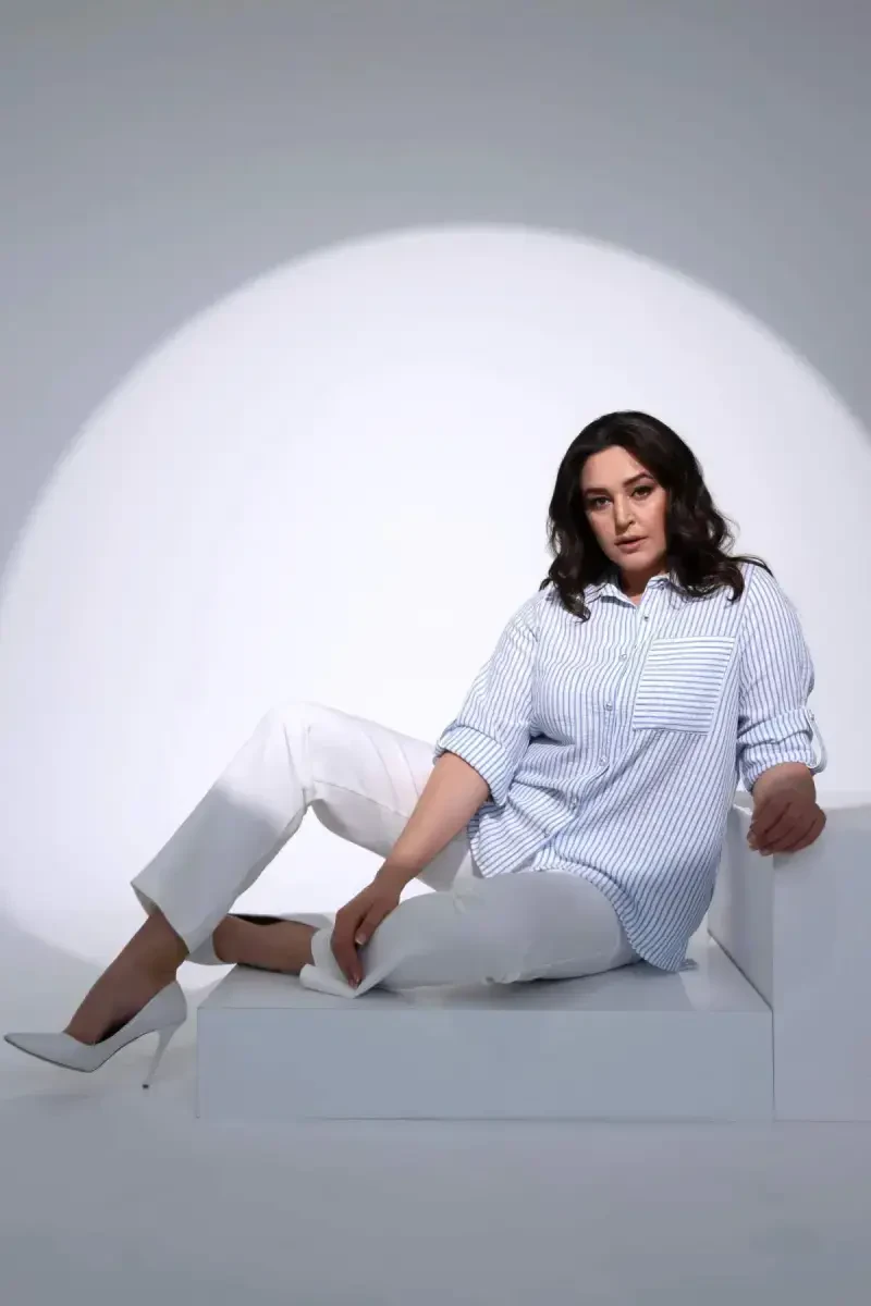 Angelino Katta o'lchamli ko'k chiziqli bitta cho'ntakli ko'ylak - nafislik va qulaylikni birlashtirgan ajoyib tanlovdir. Bahor va yoz oylarining ajralmas qismi bo'ladigan ushbu ko'ylak, jonli ko'k rangi va nafis chiziqli dizayni bilan ko'zni qamashtiruvchi ko'rinishga ega. Qulay formasi tufayli kun bo'yi o'zingizni qulay his qilasiz. Yengil va nafas oladigan mato issiq havoda salqinlikni ta'minlaydi. Buklanadigan yenglari amaliy foydalanish imkoniyatini yaratadi, istalgan vaqtda yenglarini buklab, sport uslubini yaratishingiz mumkin. Kestirib, ostidagi uzunligi zamonaviy va nafis siluetni yaratadi. Angelino Katta o'lchamli ko'k chiziqli bitta cho'ntakli ko'ylak - kundalik hayotda ham, maxsus kunlarda ham bemalol kiyishingiz mumkin bo'lgan ko'p qirrali kiyim. Mato shim bilan birgalikda ofis qiyofasini yaratishingiz mumkin, jinsi shimlar va sport poyabzallari bilan esa yanada erkinroq uslubni yaratishingiz mumkin. Bitta cho'ntak tafsiloti ham nafis, ham funktsional element hisoblanadi. 85% poliester - 15% paxta aralashamasi mato ham bardoshli, ham yumshoq bo'lib, teringizga yumshoqlik bilan tegib, uzoq muddatli foydalanishni ta'minlaydi. Jonli ko'k rang har qanday teri rangiga mos keladi va sizni yanada baquvvat ko'rsatadi. Ushbu ko'ylak sizning garderobingizning ajralmas qismiga aylanadi! Yozning energiyasi va jo'shqinligini aks ettiruvchi ushbu ko'ylak bilan uslubingizni yuqori darajaga ko'taring.