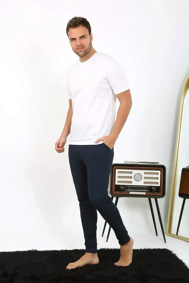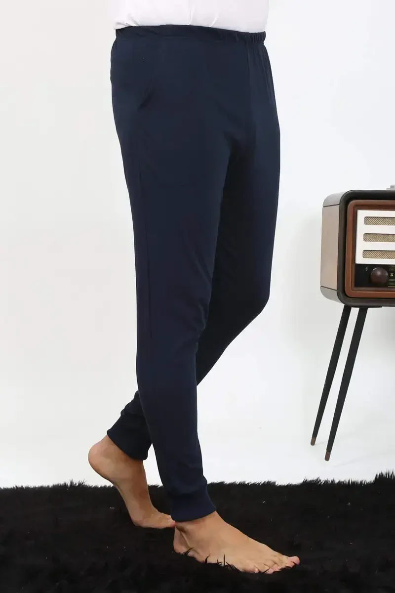 Made from 100% cotton fabric, these pajama bottoms offer a comfortable sleep experience with their soft and breathable texture. With their navy blue color and stylish design, they can be used comfortably both indoors and outdoors.