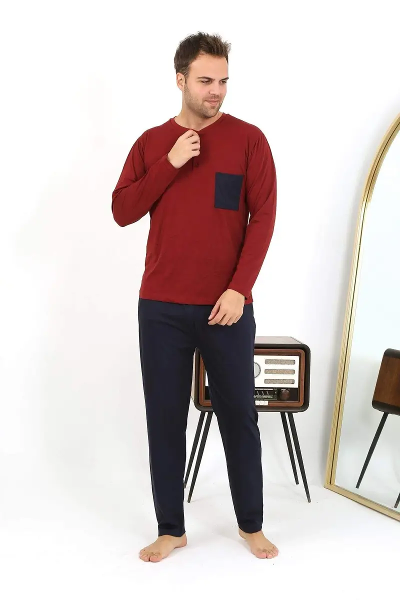 Angelino Men's Long Sleeve Knitted Burgundy Pajama Set 6861 is the ideal choice for men who seek comfort and elegance in their home wear. Thanks to its 100% cotton fabric, this pajama set has a soft touch, allows your skin to breathe, and offers a comfortable sleep experience throughout the night. With its burgundy color and modern design, the Angelino Pajama Set provides a stylish look, preventing you from compromising your style even during your time at home. The top piece is long-sleeved and has a crew neck, while the bottom piece has a straight cut and a comfortable waistband. This ensures freedom of movement and allows you to move comfortably. With its durable seams and high-quality fabric, this pajama set offers long-term use and will become one of the indispensable pieces in your wardrobe. Ideal for daily use, this set provides maximum comfort while relaxing at home, reading a book or watching a movie. Its soft texture does not irritate your skin and does not cause allergic reactions. Angelino Men's Long Sleeve Knitted Burgundy Pajama Set is a perfect choice for modern men who seek both elegance and comfort. Designed with attention to every detail, this pajama set offers you luxurious comfort in your home. The product is shipped within 24 hours, so you can enjoy the comfort in a short time. When choosing a size, you can use the size chart in the product images. The product on the model is size M. If you are looking for a special gift for yourself or your loved ones, Angelino Men's Long Sleeve Knitted Burgundy Pajama Set will be an excellent option.
