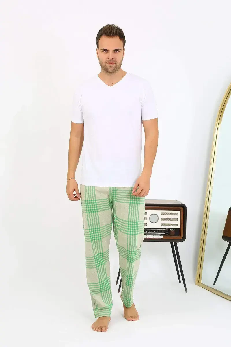 **Angelino Men's Plaid Patterned Cotton Jersey Single Bottom Pajamas 27540 Green**