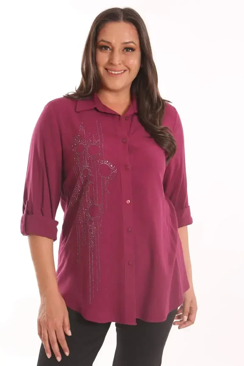 Angelino Plus Size Cherry Stone Printed Woven Shirt | Stylish and Comfortable