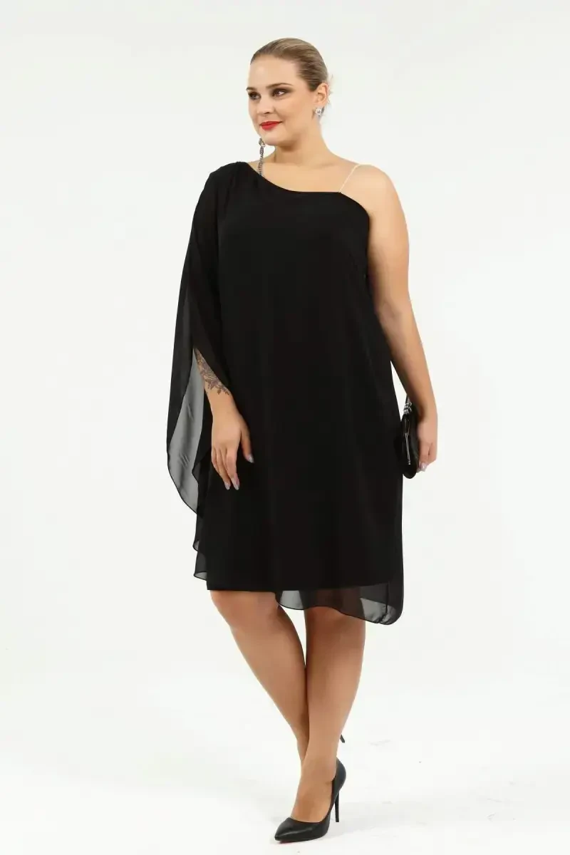 Angelino Plus Size Stone Strap One Shoulder Chiffon Evening Dress Black KL6060Z