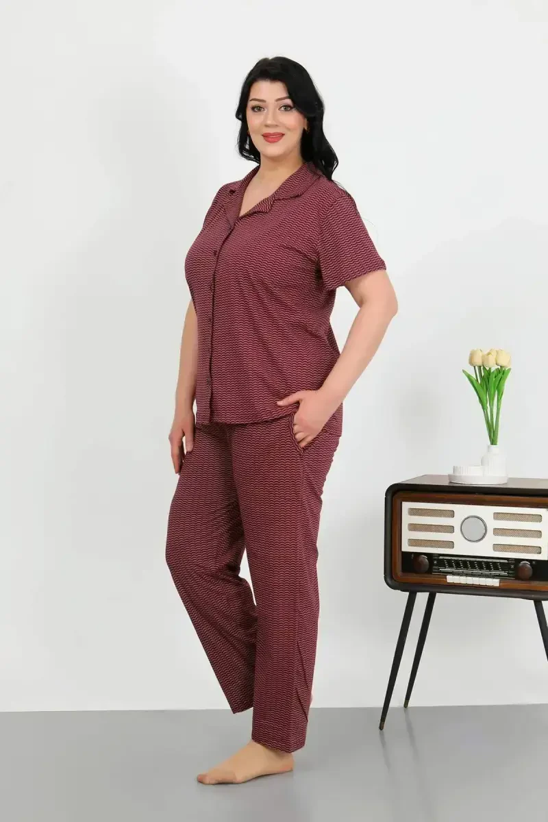 Angelino Women's Plus Size Cotton Buttoned Purple Pajama Set 202507 is a perfect choice for women seeking comfort in home wear, combining comfort and elegance. Thanks to its soft and breathable 100% cotton fabric, it creates a silky touch on your skin. With its comfortable fit and carefully designed details, it allows you to relieve the tiredness of the day and fall into a peaceful sleep. The purple color adds a sophisticated touch to the pajama set as a symbol of nobility and elegance. The buttons on the top piece offer practical use while adding a stylish look. The pocket detail provides ease of use, allowing you to carry your phone or small belongings with you. This pajama set adapts to every body type with its plus size options and makes you feel free. The meticulous workmanship in the sewing details offers long-term use. The Angelino Plus Size Cotton Pajama Set, which allows you to be comfortable without sacrificing your elegance during your time at home, will be one of the indispensable pieces of your wardrobe with its quality fabric and modern design. It offers a cool sleep experience on cool summer nights, and it is comfortable enough to keep you warm in the winter months. Ideal for daily use, this pajama set will make you feel special. A perfect choice for those looking for both stylish and comfortable pajamas, this product will give you comfortable and enjoyable moments at home. Thanks to its durable fabric, it retains its first-day quality even after repeated washing, does not fade and does not shrink. Produced with Angelino quality, this pajama set is one of the best gifts you can give yourself or your loved ones.