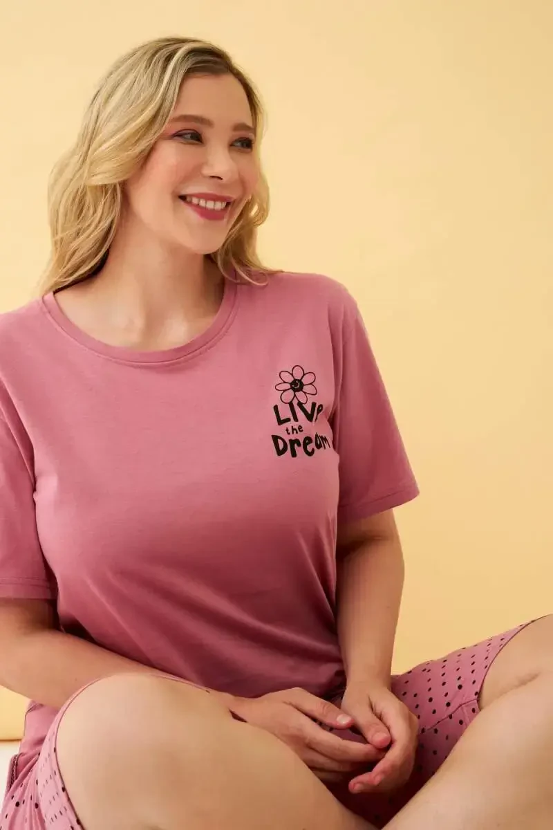 Get ready to experience the comfort of your dreams with the Angelino Women's Salmon "Live the Dream" Plus Size Capri Pajama Set! This special design pajama set combines comfort and elegance to accompany you during both your night's sleep and enjoyable moments at home. The warm and inviting tone of salmon combines with the "Live the Dream" text and tiny flower details, radiating a positive energy. This energy will help you start the day refreshed and keep your motivation high throughout the day. The top of the pajama set does not restrict your freedom of movement thanks to its comfortable cut, while the bottom offers an energetic and modern look with its polka dot capri model. Polka dots add a fun atmosphere to the pajamas, while the capri length allows you to stay cool and comfortable in hot weather. Angelino designed this pajama set by prioritizing the comfort and elegance of plus size women. Offering all-day comfort thanks to its flexible waist structure, this set gently touches your skin with its light and breathable 100% combed cotton fabric. Thanks to its non-sweating structure, it allows you to have an uninterrupted sleep experience throughout the night. The fabric of the pajama set is made of high-quality combed cotton material, so it is long-lasting and does not wear out easily. Its colors do not fade and it retains its shape, so you can use it like the first day for a long time. This pajama set stands out not only with its comfort but also with its stylish design. This set, which will make you feel good even when you spend time at home, also allows you not to compromise on your elegance while hosting your guests. Angelino Women's Salmon "Live the Dream" Plus Size Capri Pajama Set is not just a pajama set, but also a lifestyle. It is designed to live your dreams and enjoy every moment. Experience comfort and elegance together by adding this special set to your wardrobe. The 3XL size on you will provide a comfortable and stylish look like the one on the mannequin. Remember, comfort and elegance are your most natural right! Live your dreams with Angelino and enjoy every moment.