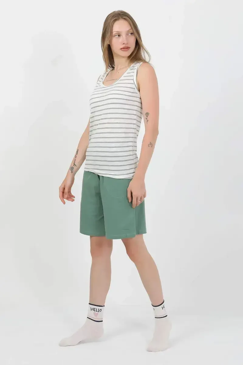 Обновите свой летний гардероб с помощью женского комплекта с шортами из хлопкового трикотажа на толстых бретелях Angelino зеленого цвета 3637! Этот стильный и удобный комплект позволит вам оставаться прохладной в жаркую погоду, не жертвуя стилем. Мягкая текстура хлопкового трикотажа позволяет вашей коже дышать в течение всего дня и обеспечивает комфортное использование. Верхняя часть на толстых бретелях придает современный и элегантный вид, а нижняя часть в виде шорт максимально увеличивает вашу свободу движений. Естественный и освежающий эффект зеленого цвета отражает вашу летнюю энергию, добавляя яркости вашему повседневному стилю. Будь то расслабляющий день дома или приятная встреча с друзьями, комплект с шортами Angelino будет сопровождать вас в любой ситуации. Практичность и стиль комплекта сделают его незаменимой частью вашего гардероба. Этот комплект, изготовленный с качеством Angelino, обеспечивает длительный срок службы и сохраняет свои цвета яркими, как в первый день, не выцветая. Женский комплект с шортами из хлопкового трикотажа на толстых бретелях Angelino - идеальный выбор для женщин, которые ищут комфорт и стиль в одном лице, и позволяет вам говорить о своем стиле в летние месяцы. Этот комплект обязательно должен быть в вашем шкафу, и вы можете создать свой собственный стиль, комбинируя его с различными аксессуарами. Этот комплект, который можно дополнить сандалиями, кроссовками или стильными тапочками, разработан таким образом, чтобы соответствовать любой обстановке. Наслаждайтесь летом с Angelino!