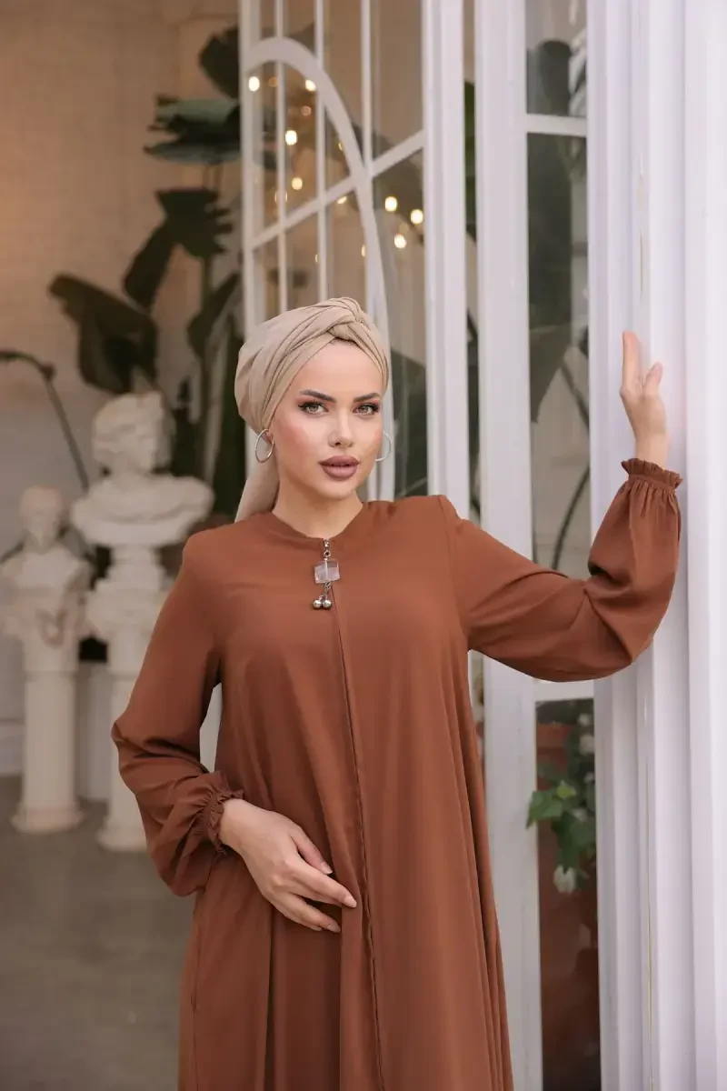 Ankanoor Taba Mevlana Ferace Anka255002-KAHVE, modern tesettür giyim anlayışına uygun olarak tasarlanmıştır. Mevlana kesiminin geniş ve dökümlü yapısı, gün boyu rahatlık sunarken, feracenin şık detayları her ortamda dikkat çekmenizi sağlar. Yüksek kaliteli kumaşı sayesinde uzun ömürlü kullanım imkanı sunan bu ferace, kolay ütülenir ve kırışmaya karşı dayanıklıdır. Taba renginin sıcak ve doğal tonu, farklı renklerdeki eşarp ve aksesuarlarla kolayca kombinlenebilir. Feracenin ön kısmında bulunan gizli düğme detayı, hem şık bir görünüm oluşturur hem de kullanım kolaylığı sağlar. Mevlana kesimi sayesinde vücut hatlarını belli etmeyen bu ferace, tesettür giyim prensiplerine uygun bir seçenektir. Özel günlerde veya günlük kullanımda tercih edebileceğiniz bu ferace, şıklığınızı tamamlayacak ve tarzınızı yansıtacak mükemmel bir seçimdir. Ankanoor kalitesiyle üretilen bu ferace, tesettür giyimde fark yaratmak isteyen kadınlar için idealdir. Gardırobunuzun vazgeçilmez parçası olacak bu ferace ile hem rahatlığın hem de şıklığın tadını çıkarın. Anka255002-KAHVE koduyla kolayca sipariş verebilir, güvenli ve hızlı kargo avantajıyla feracenize sahip olabilirsiniz. Bu ferace, sadece bir kıyafet değil, aynı zamanda bir yaşam tarzıdır. Tesettür giyimde özgünlüğünüzü ve zarafetinizi ön plana çıkaracak bu özel tasarım, her zaman ve her yerde stilinizi konuşturmanızı sağlar. Ankanoor Taba Mevlana Ferace ile hem modern hem de geleneksel çizgileri bir arada yaşayın. Bu ferace, tesettür modasına yeni bir soluk getiriyor ve kadınların beğenisini kazanıyor. Kaliteli malzeme, özenli işçilik ve şık tasarımın birleşimiyle ortaya çıkan bu ferace, tesettür giyimde yeni bir standart belirliyor. Ankanoor farkıyla, şıklığı ve rahatlığı bir arada yaşayın.