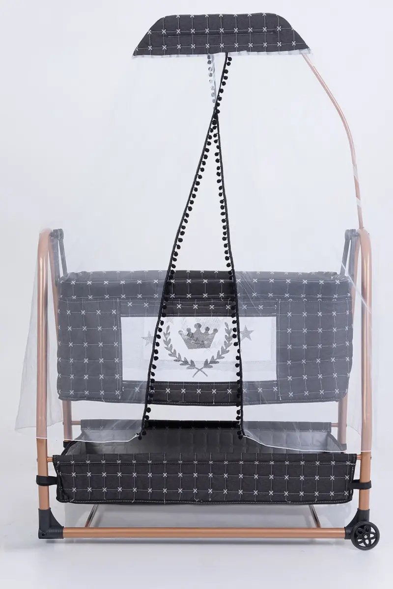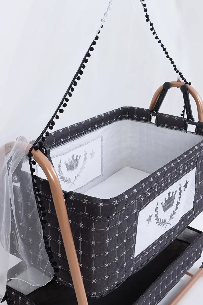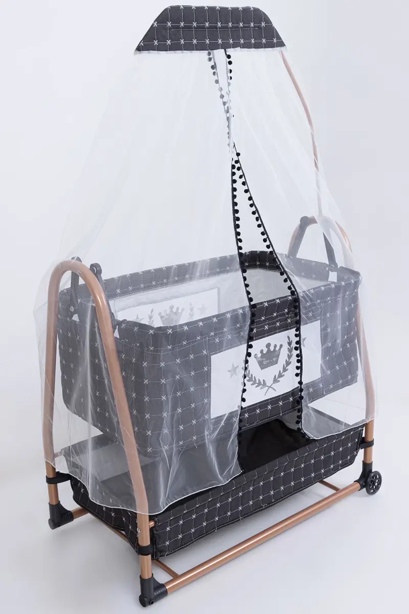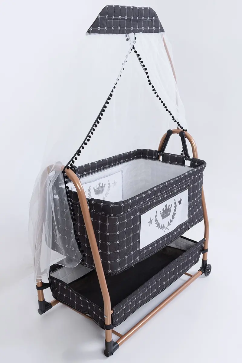 Anne Yanı Sepet Beşik Tekerlekli Lüks Beşik-Koyu Gri