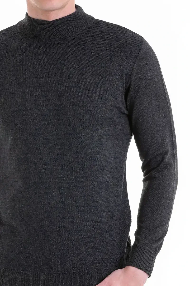 Anthracite Comfort Fit Jacquard Half Turtleneck Wool Knit Sweater-Anthracite