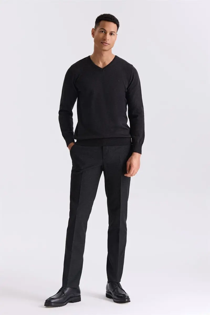 Anthracite Slim Fit V-Neck Knit Sweater | Stylish Men's Sweater
