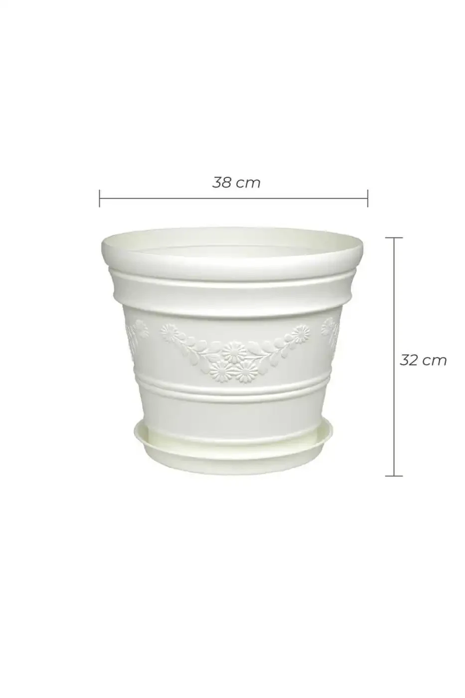 The Antique Daisy Patterned White Flowerpot is the perfect choice to decorate your garden or balcony stylishly, offering a spacious and comfortable living space for your plants. With a capacity of 21 liters, you can easily grow your large plants and enjoy its aesthetic appearance.