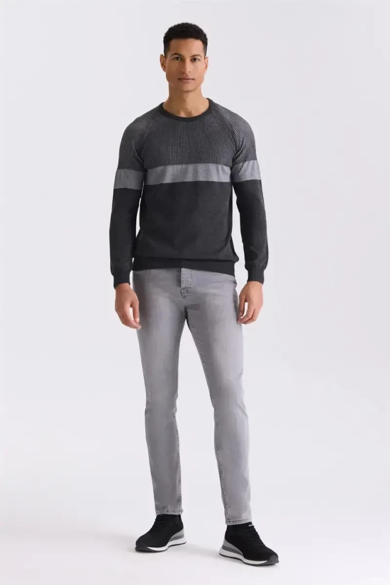 Антрацитовый свитер приталенного кроя, Трикотажный свитер в полоску, Уютный трикотажный свитер, Повседневный трикотажный свитер, Стильный трикотажный свитер