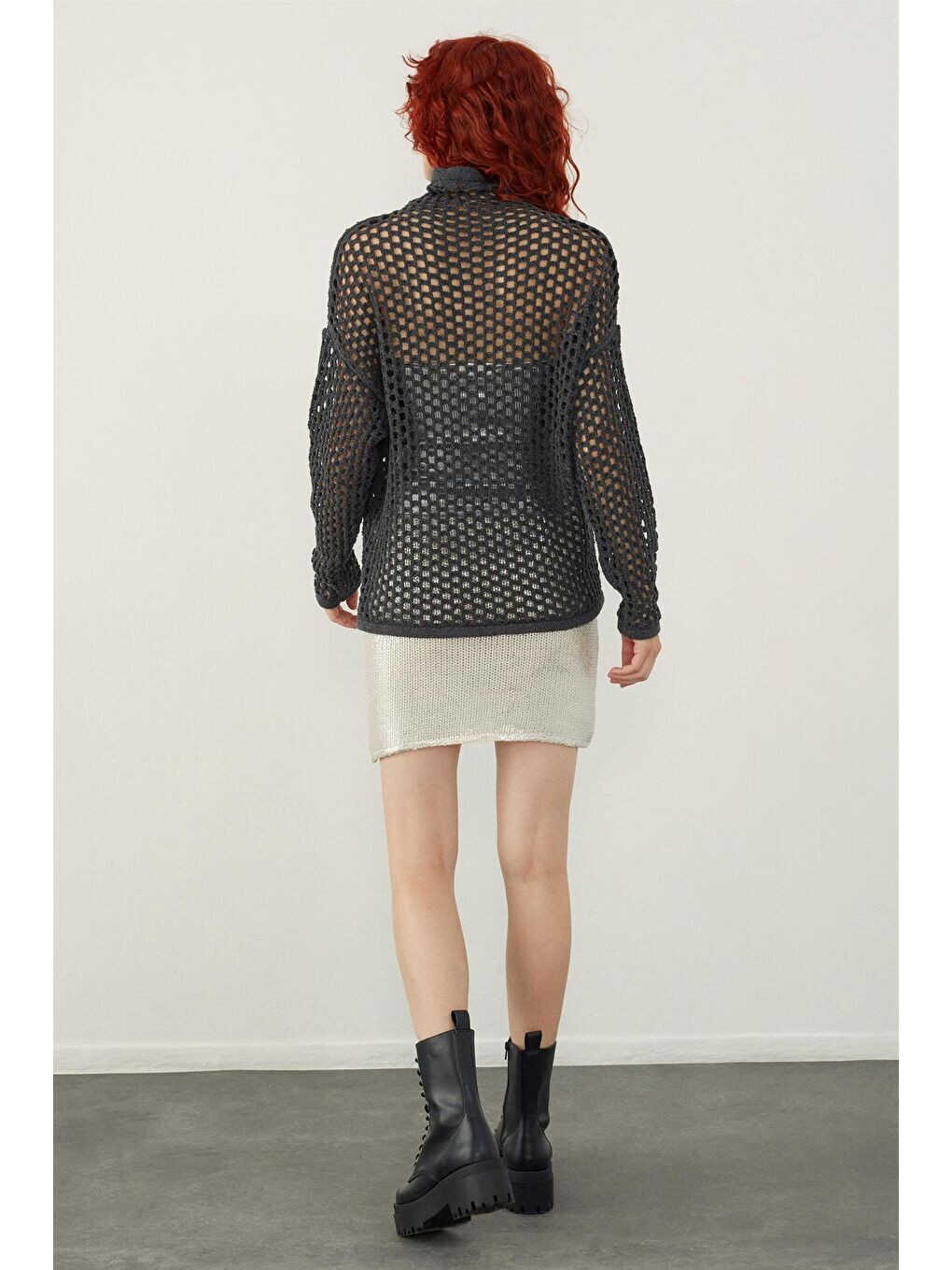 Ажурный трикотажный свитер антрацитового цвета имеет особый дизайн, сочетающий в себе элегантность и комфорт. Этот свитер будет сопровождать вас в повседневной жизни или в особые моменты и станет незаменимой частью вашего гардероба благодаря своему современному внешнему виду и удобной структуре. Смесь 51% хлопка и 49% полиэстера в составе пряжи придает свитеру прочность и мягкость, обеспечивая длительное использование. Широкий крой не ограничивает вашу свободу движений, а высокий воротник добавляет элегантности вашему образу. Ажурный трикотажный узор придает свитеру неповторимый вид, а воздухопроницаемость обеспечивает комфорт в течение всего дня. Длинные рукава согреют вас в прохладную погоду, а современный крой подойдет к любому наряду. Антрацитовый цвет подходит для разных стилей благодаря своей легкой сочетаемости и позволяет вам выглядеть стильно в любой обстановке. Независимо от того, сочетаете ли вы его с джинсами для создания спортивного образа или с юбками для создания более элегантного образа, этот свитер всегда будет сопровождать вас. На модели изделие размера S-M, а параметры модели (рост: 1,77, грудь: 81, талия: 60, бедра: 90) могут помочь вам с выбором размера. Помните, что между размерами могут быть небольшие отклонения. Этот стильный и удобный свитер идеально подходит как для повседневной носки, так и для особых случаев. Откройте для себя этот свитер, который станет незаменимой частью вашего гардероба, и дополните свой стиль. Чувствуйте себя всегда стильно и комфортно в трикотажном свитере антрацитового цвета.