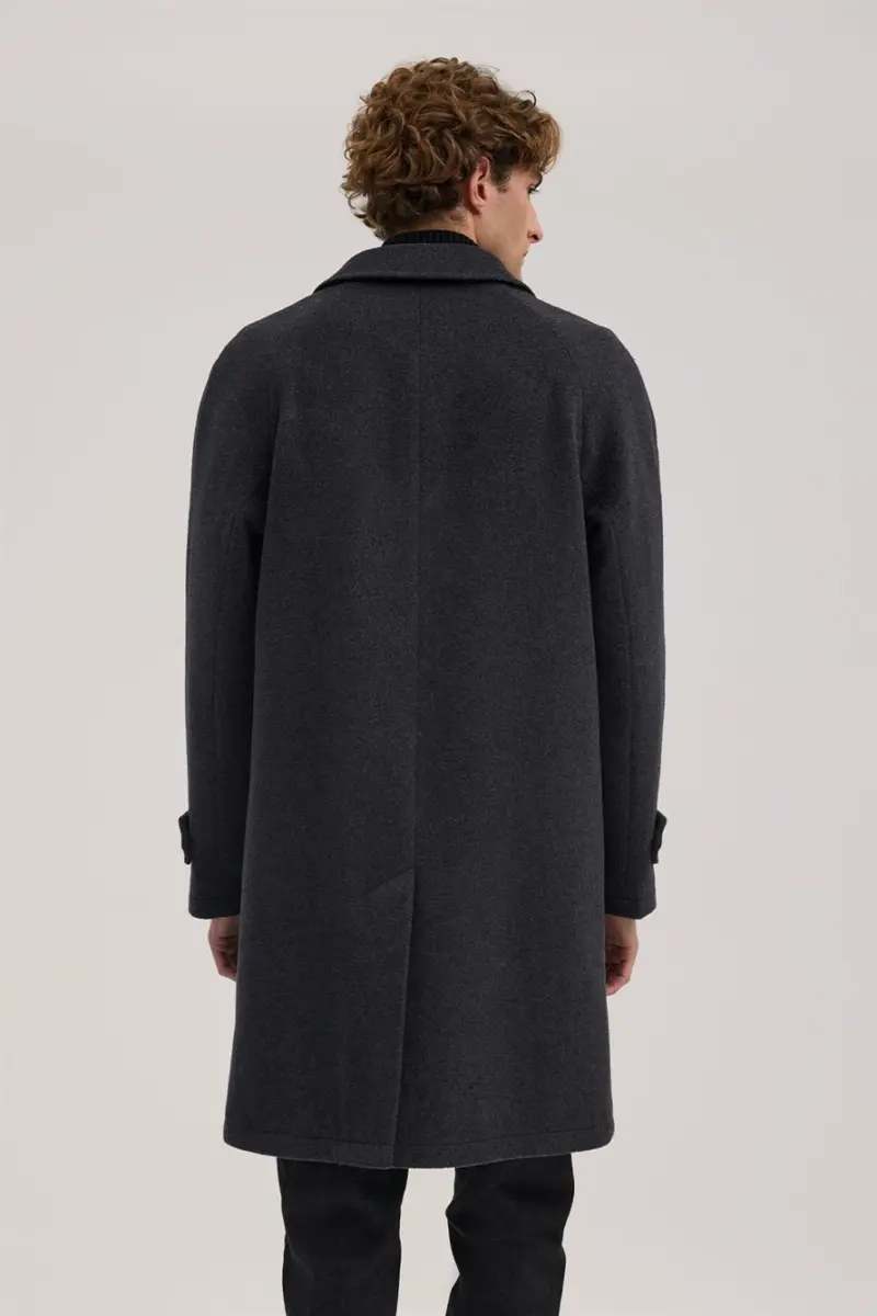 Antrasit Comfort Fit Bebe Yaka Yünlü Kaban