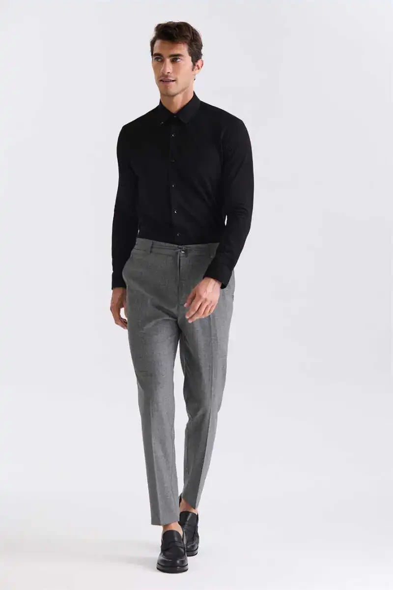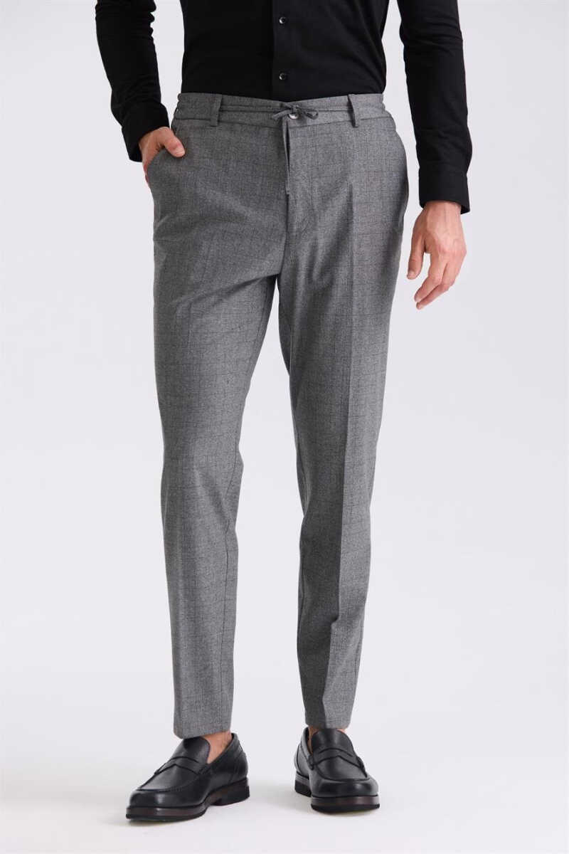 beli lastikli pantolon, yünlü kumaş pantolon, antrasit pantolon, comfort fit pantolon