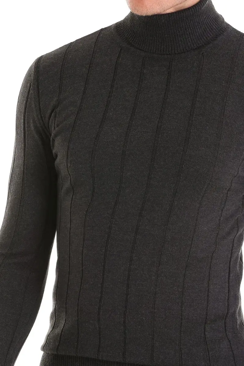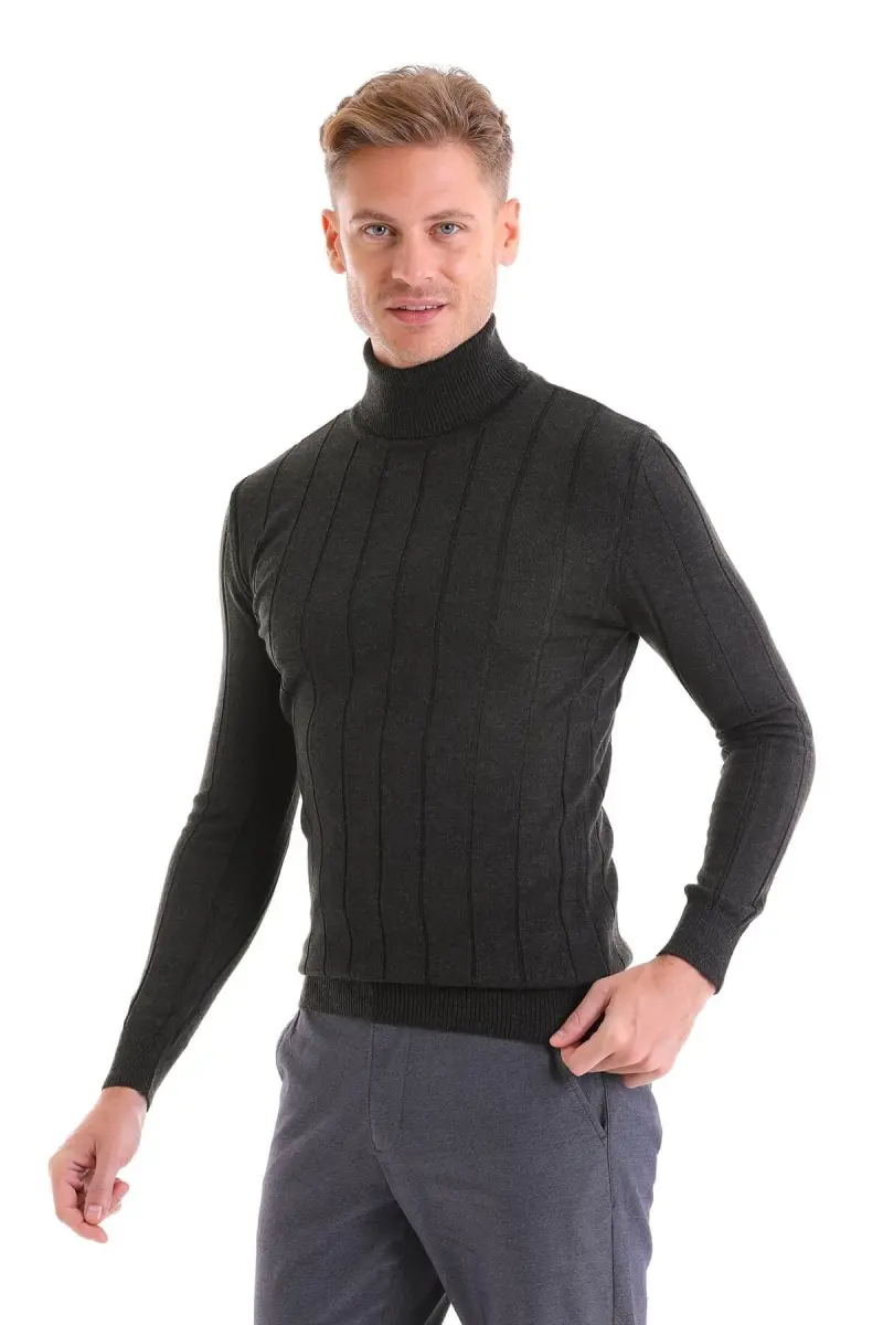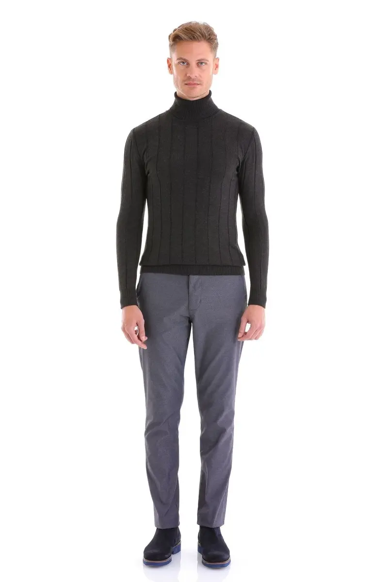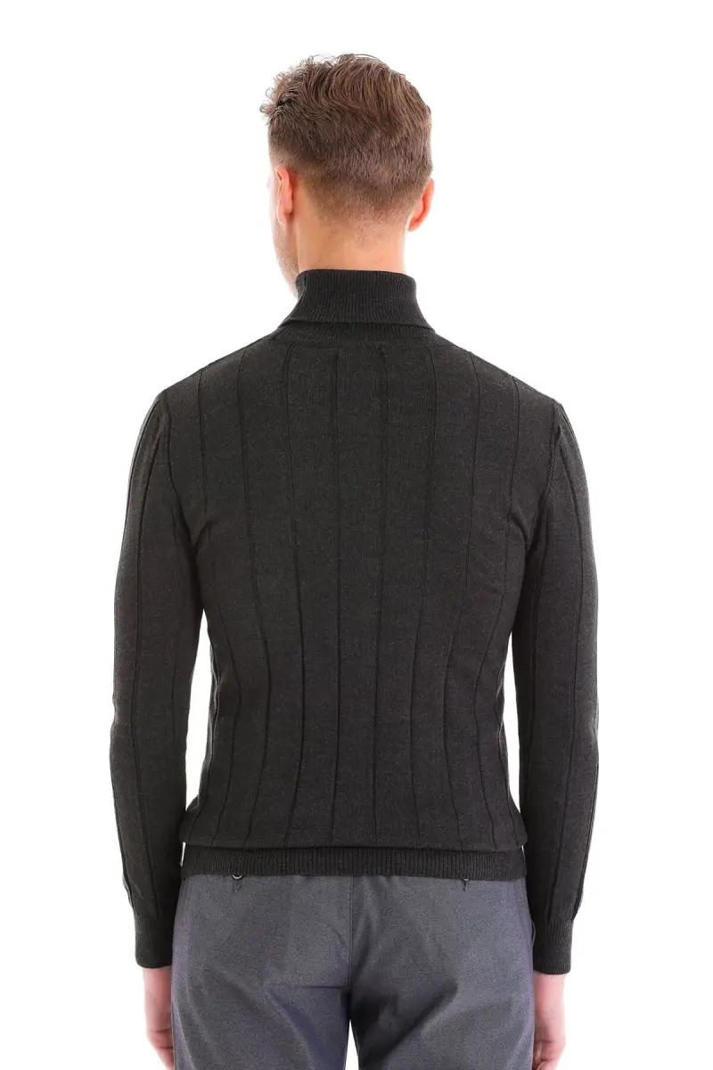 Antrasit Comfort Fit Fitilli Balıkçı Yaka Yünlü Yün Kazak-Antrasit