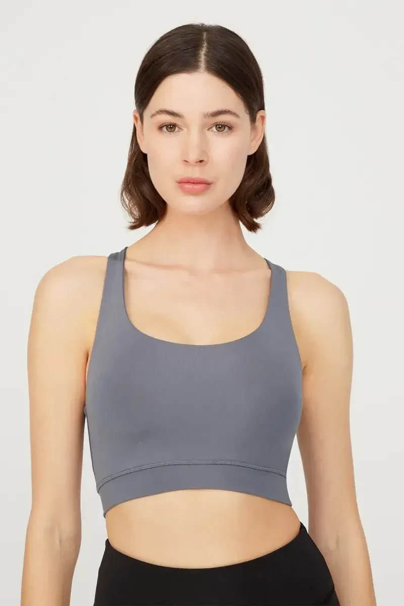 Information About the Anthracite Light Support Crisscross Back Detailed Padded Sports Bra: