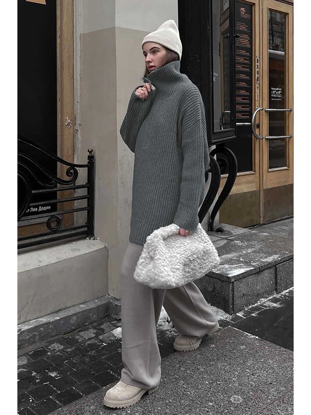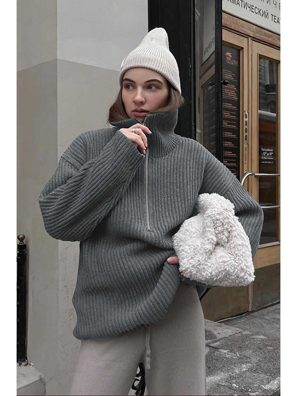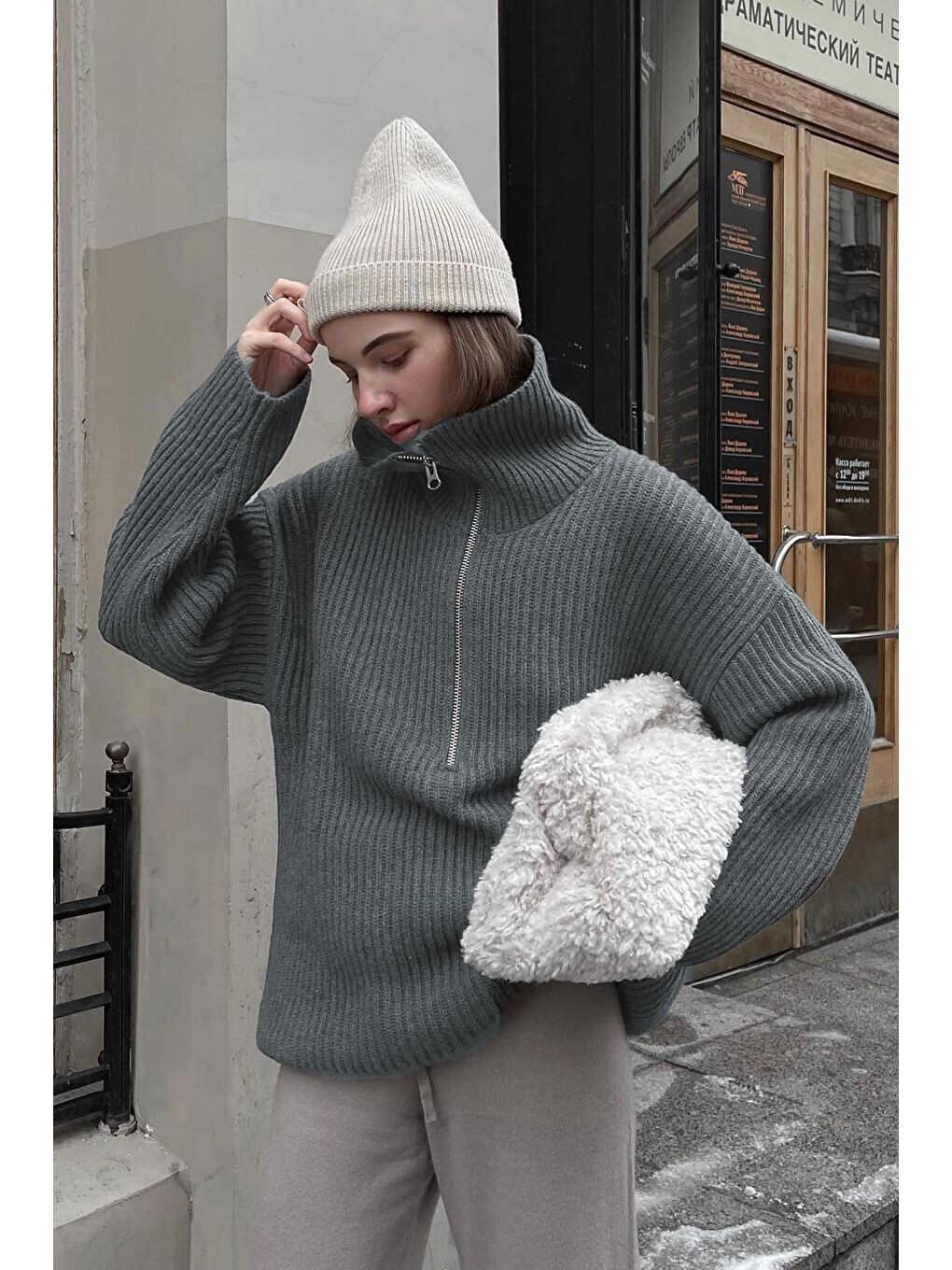 Antrasit Fermuar Yoqa Oversize Ko'ylagi MG1946 bilan uslubingiz va qulayligingizni birgalikda boshdan kechiring! Hoziroq buyurtma bering va qishning bahriga tutuning.