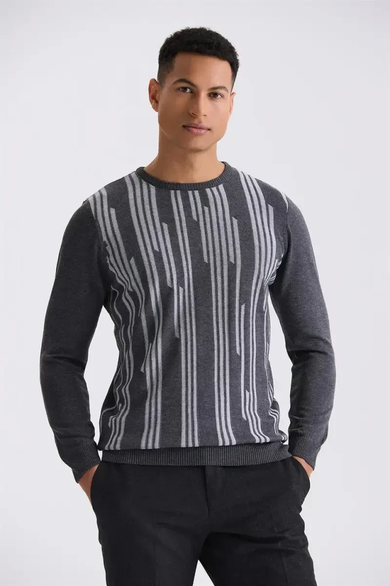 Antrasit Slim Fit Desenli Triko Kazak: Tarzınızı Yansıtın