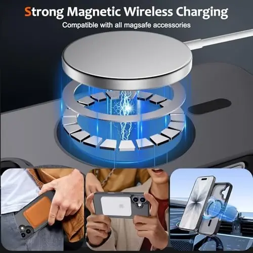 [Perfect Fit] - This case is ONLY compatible for iPhone 17 6.3 inch; Exact cutouts for all ports and buttons; and also easy to put on and take it off [Strong Magnetic Connection] - This phone case for iPhone 17 phone case have built-in strong magnets, compatible with MagSafe accessories, such as wireless charger, magnetic car mount, magnetic phone holder, magnetic wallet and other mag safe accessories; It makes daily life very convenient [Translucent Matte Back] - The translucent frosted matte back prevents the case from yellowing, keeping fingerprints off and dust away. Meanwhile the Phone logo is also faintly displayed, making your Phone stylish and elegant [Screen & Camera Protection] - The sufficient raised lips design above the camera lens and the screen provide your phone maximum protection from daily scratches and drops [Soft & Protective] - This phone case is made of high-quality hard matte PC back and anti-slip soft TPU bumper side, easy to grip and comfortable to hold; It also has a shock-absorbing corner cushion in each corner, to provide better corner drop protection