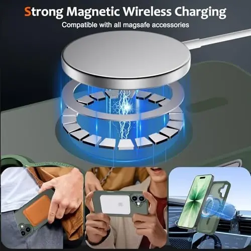 [Perfect Fit] - This case is ONLY compatible for iPhone 17 6.3 inch; Exact cutouts for all ports and buttons; and also easy to put on and take it off [Strong Magnetic Connection] - This phone case for iPhone 17 phone case have built-in strong magnets, compatible with MagSafe accessories, such as wireless charger, magnetic car mount, magnetic phone holder, magnetic wallet and other mag safe accessories; It makes daily life very convenient [Translucent Matte Back] - The translucent frosted matte back prevents the case from yellowing, keeping fingerprints off and dust away. Meanwhile the Phone logo is also faintly displayed, making your Phone stylish and elegant [Screen & Camera Protection] - The sufficient raised lips design above the camera lens and the screen provide your phone maximum protection from daily scratches and drops [Soft & Protective] - This phone case is made of high-quality hard matte PC back and anti-slip soft TPU bumper side, easy to grip and comfortable to hold; It also has a shock-absorbing corner cushion in each corner, to provide better corner drop protection