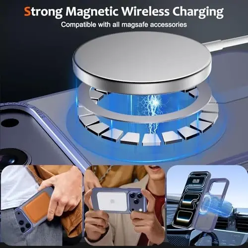 [Perfect Fit] - This case is ONLY compatible for iPhone 17 Pro Max 6.9 inch; Exact cutouts for all ports and buttons; and also easy to put on and take it off [Strong Magnetic Connection] - This phone case for iPhone 17 Pro Max phone case have built-in strong magnets, compatible with MagSafe accessories, such as wireless charger, magnetic car mount, magnetic phone holder, magnetic wallet and other mag safe accessories; It makes daily life very convenient [Translucent Matte Back] - The translucent frosted matte back prevents the case from yellowing, keeping fingerprints off and dust away. Meanwhile the Phone logo is also faintly displayed, making your Phone stylish and elegant [Screen & Camera Protection] - The sufficient raised lips design above the camera lens and the screen provide your phone maximum protection from daily scratches and drops [Soft & Protective] - This phone case is made of high-quality hard matte PC back and anti-slip soft TPU bumper side, easy to grip and comfortable to hold; It also has a shock-absorbing corner cushion in each corner, to provide better corner drop protection