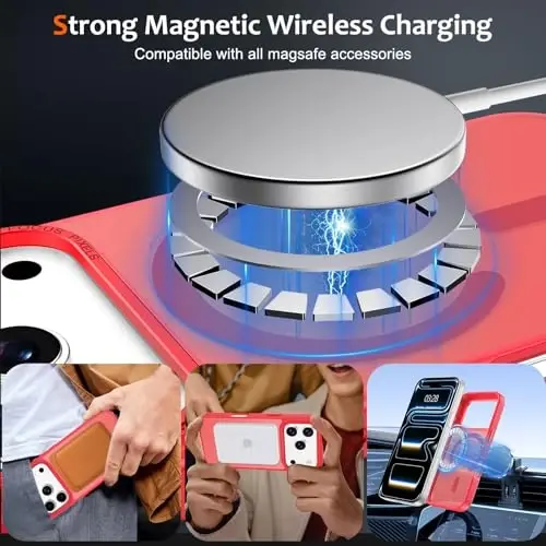 [Perfect Fit] - This case is ONLY compatible for iPhone 17 Pro Max 6.9 inch; Exact cutouts for all ports and buttons; and also easy to put on and take it off [Strong Magnetic Connection] - This phone case for iPhone 17 Pro Max phone case have built-in strong magnets, compatible with MagSafe accessories, such as wireless charger, magnetic car mount, magnetic phone holder, magnetic wallet and other mag safe accessories; It makes daily life very convenient [Translucent Matte Back] - The translucent frosted matte back prevents the case from yellowing, keeping fingerprints off and dust away. Meanwhile the Phone logo is also faintly displayed, making your phone stylish and elegant [Screen & Camera Protection] - The sufficient raised lips design above the camera lens and the screen provide your phone maximum protection from daily scratches and drops [Soft & Protective] - This phone case is made of high-quality hard matte PC back and anti-slip soft TPU bumper side, easy to grip and comfortable to hold; It also has a shock-absorbing corner cushion in each corner, to provide better corner drop protection