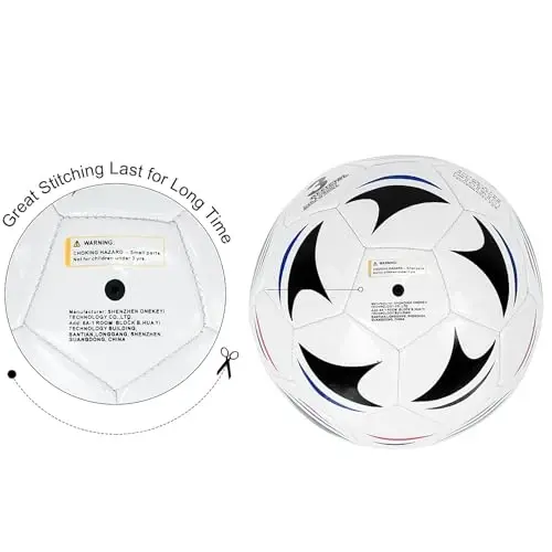 Eco-Friendly 2.5mm PVC Leather: Made with durable, non-toxic 2.5mm PVC leather, this soccer ball offers a sustainable and safe choice for recreational play, perfect for kids Eco-Friendly Rubber Inner Bladder: Features an eco-conscious rubber bladder that enhances air retention, providing a more sustainable option for casual soccer games Durable Machine-Stitched Panels: Reinforced machine stitching ensures the ball maintains its shape and durability, even with frequent recreational use and outdoor play Ideal for Recreational Play: Perfect for backyard fun, school practice, and casual matches, this soccer ball is designed for use on grass, turf, and indoor surfaces Convenient Inflation with Ball Pump: Ships flat for easy storage and transport, and includes a ball pump for quick and hassle-free inflation when you're ready to play