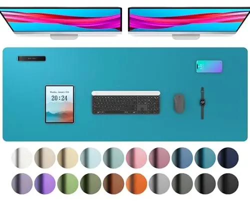 Aothia teri stol usti himoyachisi ofisingiz yoki uyingiz uchun ideal yechimdir. Ushbu katta o'lchamli (48"x17") stol matosi nafaqat ish joyingizni himoya qiladi, balki zamonaviy va professional ko'rinish beradi. Bardoshli PU teri materialidan tayyorlangan bo'lib, stolingizni tirnalishlar, dog'lar, to'kilishlar, issiqlik va aşınmalardan himoya qiladi. Silliq yuzasi tufayli yozish, klaviaturadan foydalanish va internetda kezish yanada yoqimli bo'ladi. Aothia stol matosi ham ofisda, ham uyda foydalanish uchun mos keladi. Keng yuzasi noutbuk, sichqoncha va klaviaturani qulay tarzda sig'dira oladigan joyni taklif etadi. Shu bilan birga, sichqoncha yostig'i, stol matosi, yozuv yostig'i sifatida ham ishlatilishi mumkin. Qulay va silliq yuzasi uzoq muddatli foydalanishda ham qulaylikni ta'minlaydi. Maxsus sirpanishga qarshi zamsh taglik dizayni tufayli stol ustida barqaror turadi va sirpanishni oldini oladi. Ikki tomonlama teriga nisbatan ishqalanish qarshiligi 70% ga oshirildi, shuning uchun matning sirpanish xavfi minimallashtiriladi. Suv o'tkazmaydigan va oson tozalanadigan PU teri materiali stolingizni to'kilgan suv, ichimlik, siyoh va boshqa suyuqliklardan himoya qiladi. Iflos bo'lganda, uni nam mato yoki qog'oz sochiq bilan osonlikcha artib olish mumkin, shunda siz har doim toza va tartibli ish joyiga ega bo'lasiz. Aothia sifatida biz o'zimizni mijozlarimizga yuqori sifatli mahsulotlar va mukammal xizmat ko'rsatishga bag'ishladik. Agar mahsulotimizdan mamnun bo'lmasangiz, biz sizga yangi mahsulot yoki 100% pulingizni qaytarishni taklif qilamiz. Bu oilangiz, do'stlaringiz va o'zingiz uchun ajoyib sovg'a variantidir. Ish joyingizni obodonlashtirish va himoya qilishning eng zamonaviy usuli bo'lgan Aothia teri stol usti himoyachisi bilan unumdorligingizni oshiring va ish muhitingizga qiymat qo'shing. Turquoise rangi bilan ofisingizga yoki uyingizga hayotiylik qo'shing.