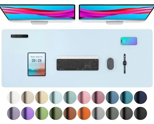 Aothia Leather Desk Pad Protector, Office Desk Mat, Large Mouse Pad, Non-Slip PU Leather Desk Blotter, Laptop Desk Pad, Waterproof Desk Writing Pad for Office and Home (48"x17", Baby Blue) ile çalışma alanınızı dönüştürün. Bu çok yönlü ve şık masaüstü pedi, sadece çalışma alanınızı korumakla kalmaz, aynı zamanda konforunuzu ve verimliliğinizi de artırır. Bebek mavisi rengiyle masanıza ferah bir dokunuş katarak, çalışmayı daha keyifli hale getirir.Ürün AçıklamasıAothia Leather Desk Pad Protector ile çalışma alanınızda düzeni ve şıklığı bir araya getirin. Bu yüksek kaliteli masaüstü pedi, sadece masanızı çiziklerden, dökülmelerden ve diğer hasarlardan korumakla kalmaz, aynı zamanda size daha konforlu bir çalışma yüzeyi sunar. Geniş boyutu (48"x17"), hem klavyenizi hem de farenizi rahatça kullanabilmeniz için yeterli alan sağlar. Üstelik, entegre mouse pad özelliği sayesinde ekstra bir mouse pad'e ihtiyaç duymazsınız.Yüksek kaliteli PU deri malzemeden üretilen Aothia Desk Pad, dayanıklılığı ve uzun ömürlü kullanımı garanti eder. Su geçirmez yüzeyi sayesinde, kazara dökülen sıvıları kolayca temizleyebilirsiniz, bu da onu yoğun çalışma ortamları için ideal bir seçim yapar. Kaymaz tabanı, pedin masa üzerinde sabit kalmasını sağlayarak, çalışırken rahatsız edici kaymaları önler.Aothia Leather Desk Pad Protector sadece pratik değil, aynı zamanda estetiktir. Bebek mavisi rengi, çalışma alanınıza huzurlu ve davetkar bir hava katar. İster ofiste, ister evde çalışıyor olun, bu masaüstü pedi, çalışma ortamınızı kişiselleştirmenize ve daha üretken olmanıza yardımcı olur. Dizüstü bilgisayarınız, klavyeniz, fareniz ve diğer ofis malzemeleriniz için geniş bir alan sunarak, masanızın üzerinde düzenli bir görünüm sağlar.Aothia Desk Pad, sadece bir masaüstü pedi değil, aynı zamanda bir çalışma arkadaşıdır. Size konforlu bir yüzey sunarak, uzun saatler boyunca çalışırken bile yorgunluğu azaltır. Kaymaz tabanı, yazarken veya çizerken pedin sabit kalmasını sağlayarak, dikkatinizin dağılmasını önler. Su geçirmez yüzeyi ise, kazara dökülen sıvıların masanıza zarar vermesini engeller.Aothia Leather Desk Pad Protector ile çalışma alanınızı yeniden tanımlayın ve hem verimliliğinizi artırın hem de çalışma ortamınıza şıklık katın. Bu masaüstü pedi, hem pratikliği hem de estetiği bir araya getiren mükemmel bir seçimdir.Ürün Özellikleri* Yüksek Kaliteli PU Deri Malzeme: Dayanıklı ve uzun ömürlü kullanım sunar.* Geniş Boyut (48"x17"): Hem klavye hem de fare için yeterli alan sağlar.* Su Geçirmez Yüzey: Dökülmelere karşı kolay temizlenebilirlik sunar.* Kaymaz Taban: Pedi masa üzerinde sabit tutar ve kaymaları önler.* Entegre Mouse Pad: Ekstra bir mouse pad'e ihtiyaç duymazsınız.* Bebek Mavisi Rengi: Çalışma alanına huzurlu ve şık bir görünüm katar.* Çizilmelere ve Hasarlara Karşı Koruma: Masanızı çiziklerden ve diğer hasarlardan korur.* Konforlu Çalışma Yüzeyi: Uzun saatler boyunca çalışırken bile konfor sağlar.* Kolay Temizlenebilirlik: Nemli bir bezle kolayca temizlenebilir.* Çok Yönlü Kullanım: Ofis, ev veya diğer çalışma alanları için idealdir.* Dizüstü Bilgisayar Pedi Olarak Kullanım: Dizüstü bilgisayarınızı doğrudan üzerine yerleştirebilirsiniz.* Yazma Pedi Olarak Kullanım: Pürüzsüz yüzeyi sayesinde rahatça yazabilirsiniz.Ek BilgilerAothia Leather Desk Pad Protector, sadece bir masaüstü pedi değil, aynı zamanda çalışma alanınızı kişiselleştirmenize ve daha verimli olmanıza yardımcı olan bir araçtır. Bebek mavisi rengi, çalışma ortamınıza huzurlu bir hava katar ve sizi motive eder. Kolay temizlenebilir yüzeyi sayesinde, her zaman temiz ve düzenli bir çalışma alanına sahip olabilirsiniz. Üstelik, kaymaz tabanı, çalışırken pedin sabit kalmasını sağlayarak, dikkatinizin dağılmasını önler. Bu ürün, hem pratikliği hem de estetiği bir araya getiren mükemmel bir seçimdir.