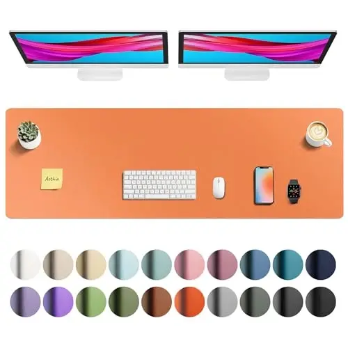 Aothia Faux Leather Desk Mat - Large Mouse Pad, Non-Slip PU Leather Blotter, Waterproof Writing Surface for Office and Home (Orange, 55" x 17")