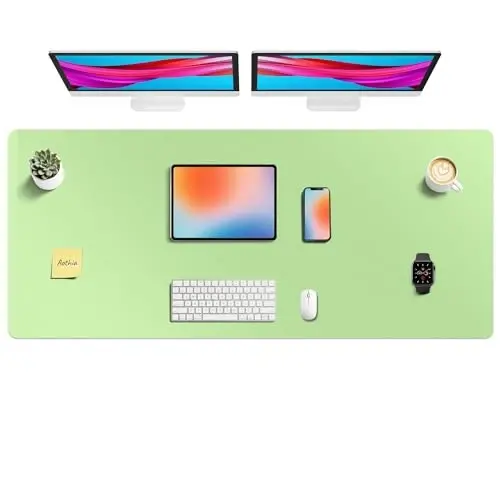 Aothia Faux Leather Desk Mat - Non-Slip PU Leather Desk Blotter, Waterproof Writing Surface, Large Desk Pad for Office & Home (Foam Green, 55" x 24")