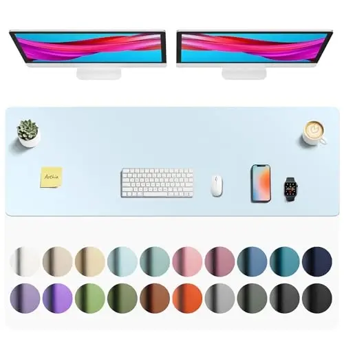 Aothia Faux Leather Desk Mat - Non-Slip PU Leather Desk Blotter, Waterproof Writing Surface, Large Desk Pad for Office & Home (Baby Blue, 55" x 17")