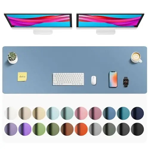 Aothia Faux Leather Desk Mat - Non-Slip PU Leather Desk Blotter, Waterproof Writing Surface, Large Desk Pad for Office & Home (Denim Blue, 55" x 17")